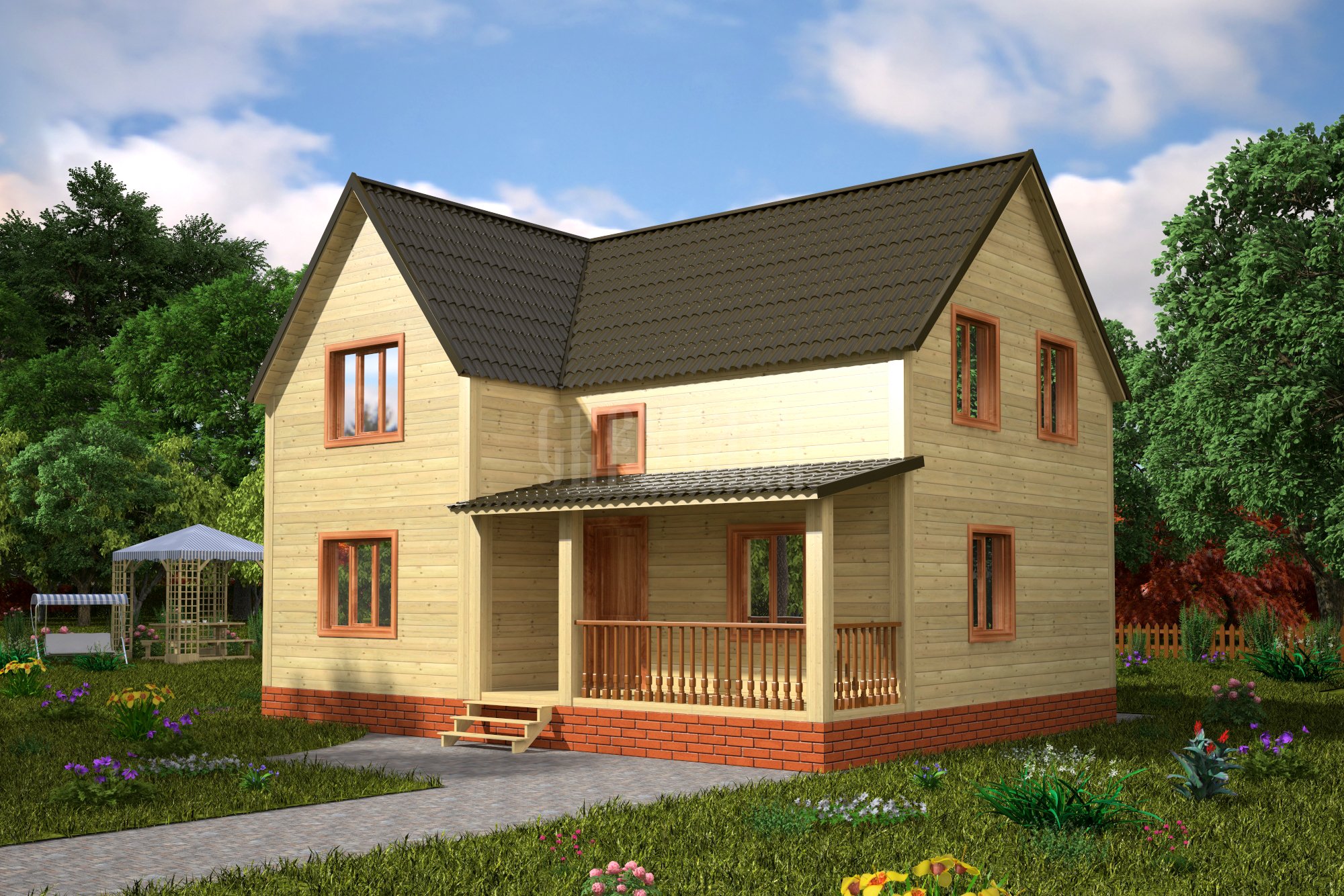 Двухэтажный коттедж с террасой