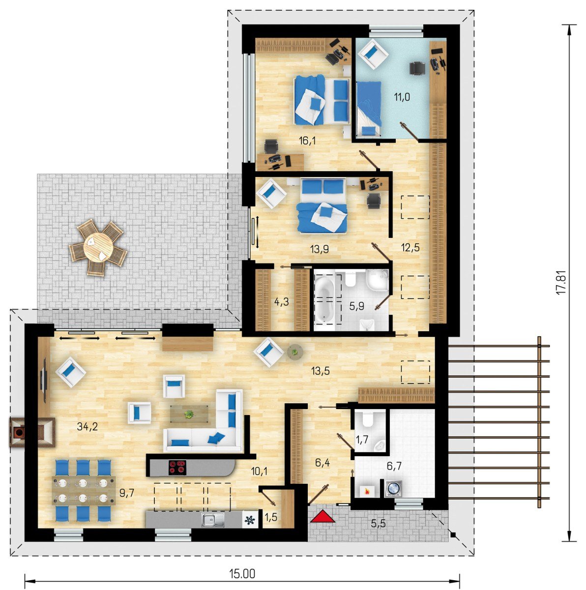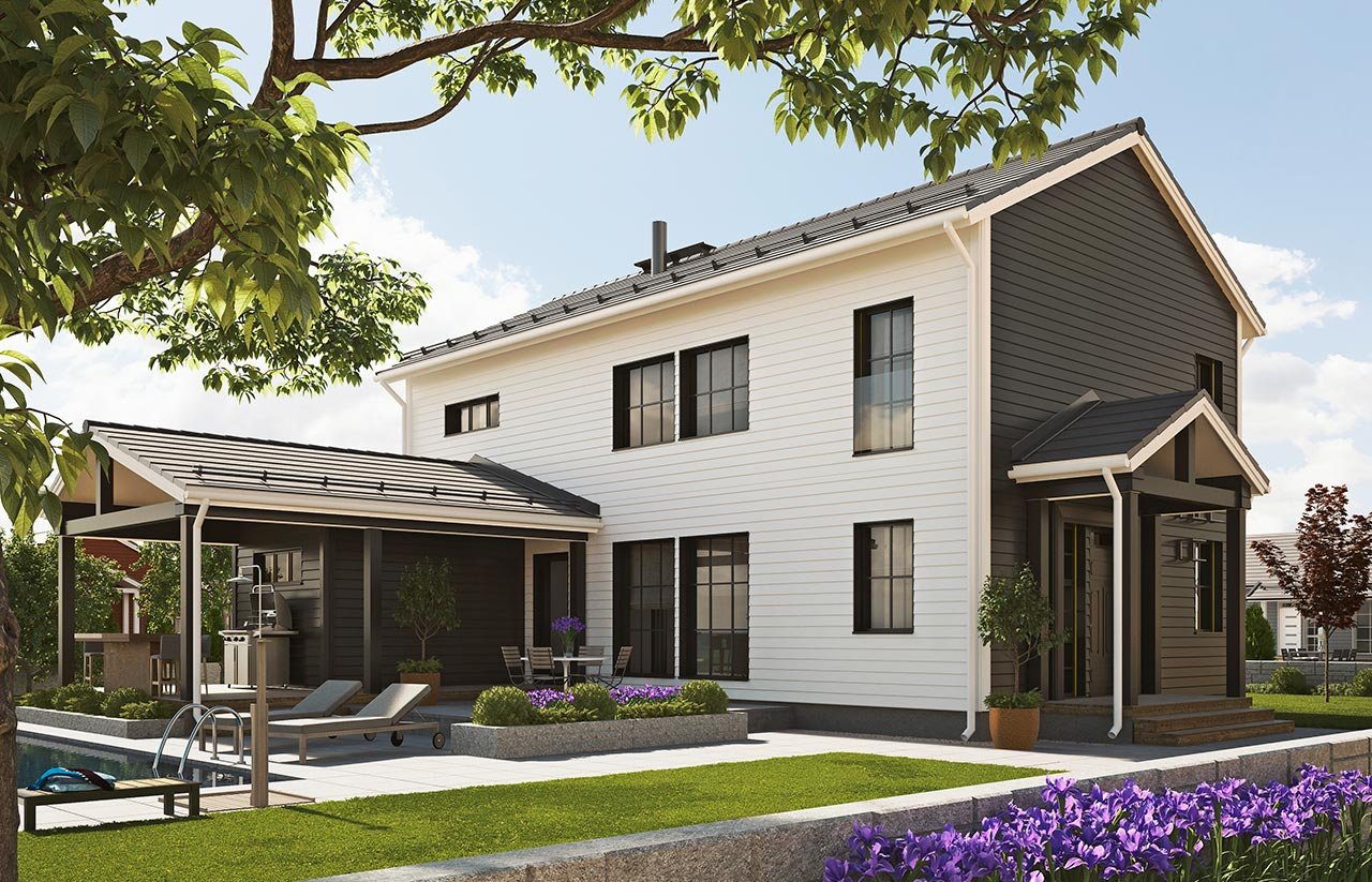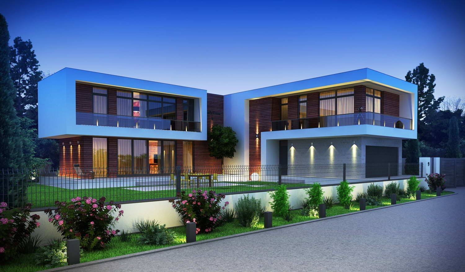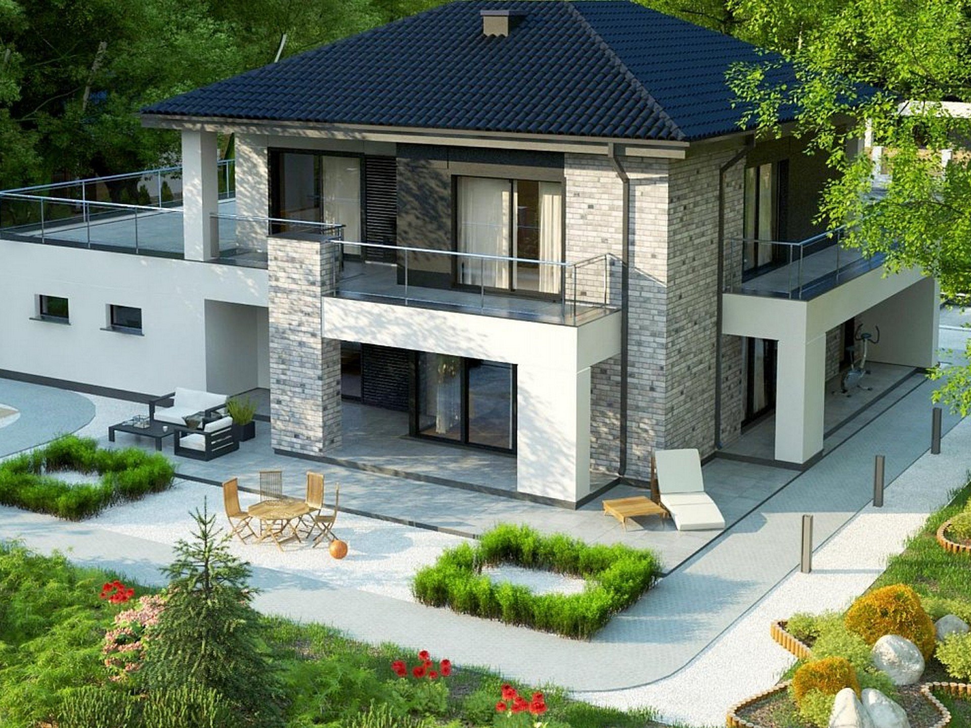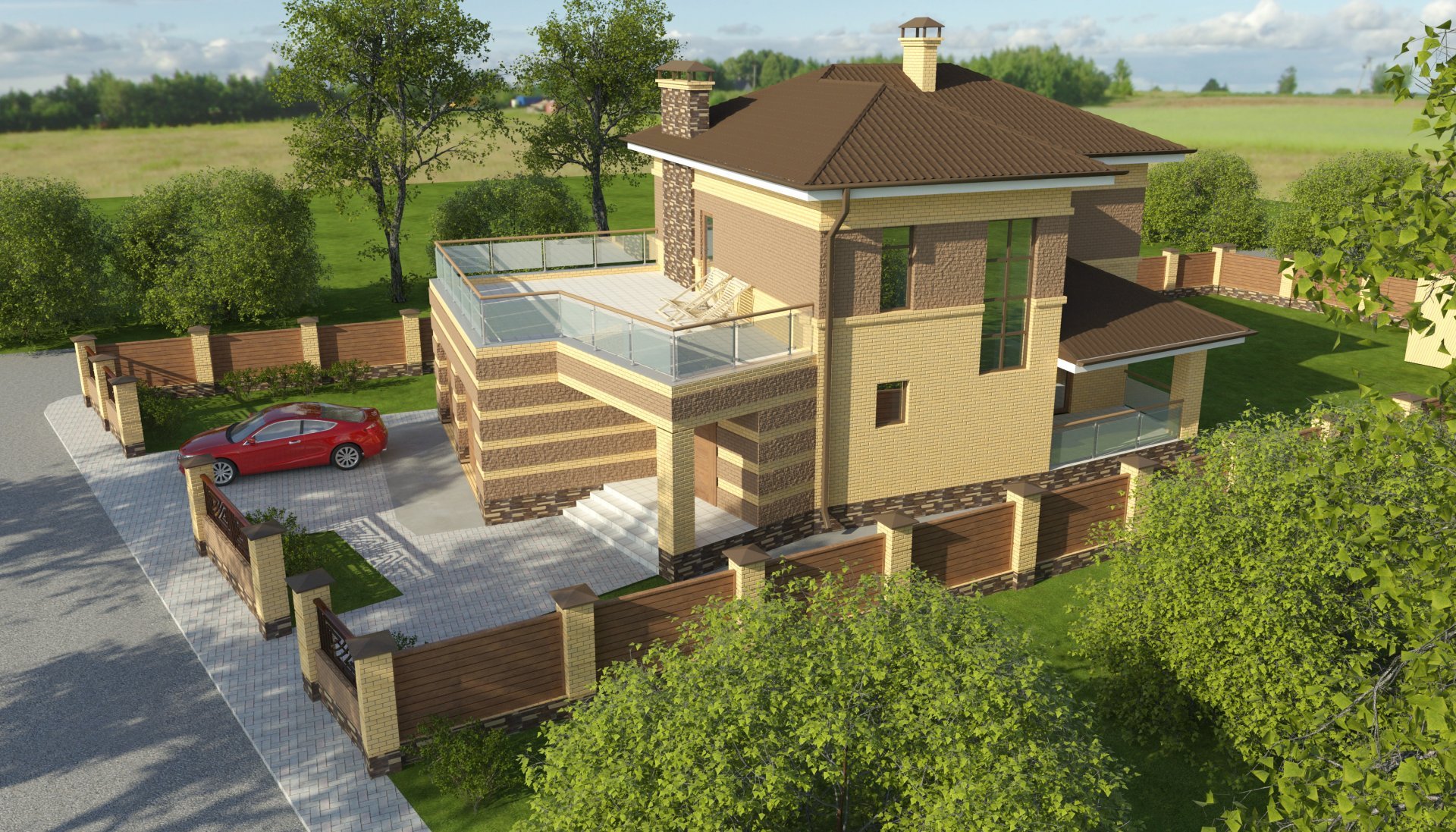 Двухэтажный дом с угловой террасой