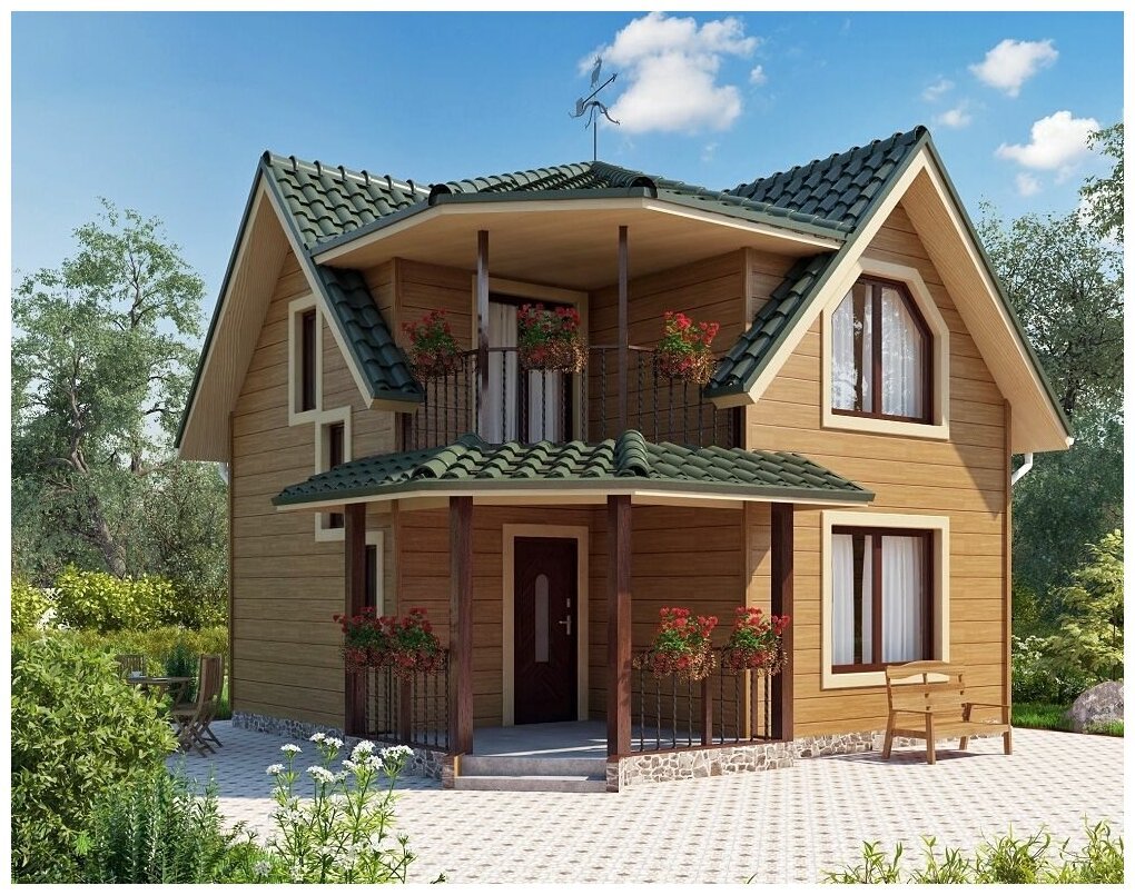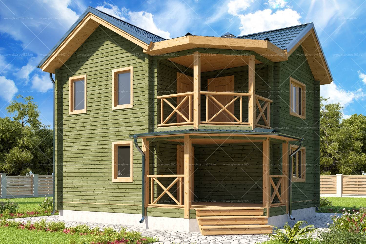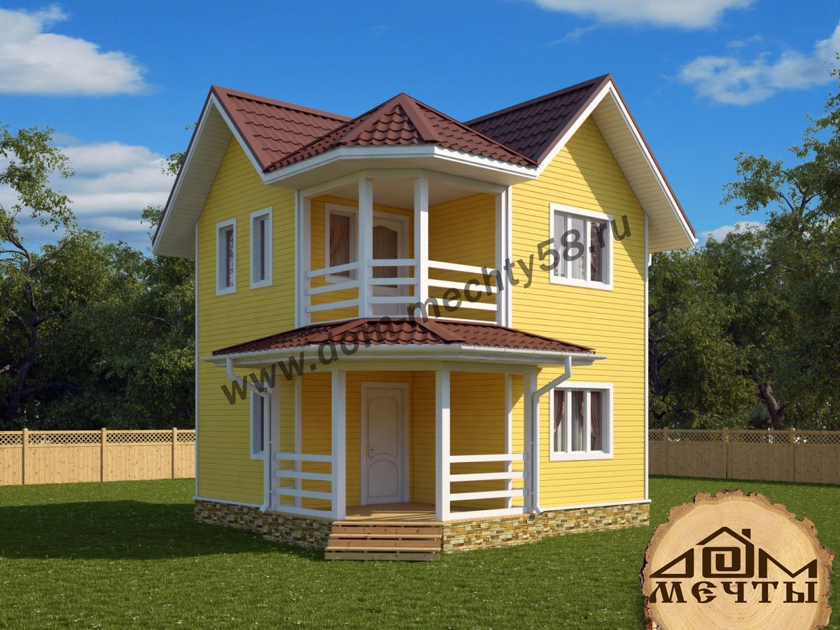 Двухэтажный каркасный дом с балконом