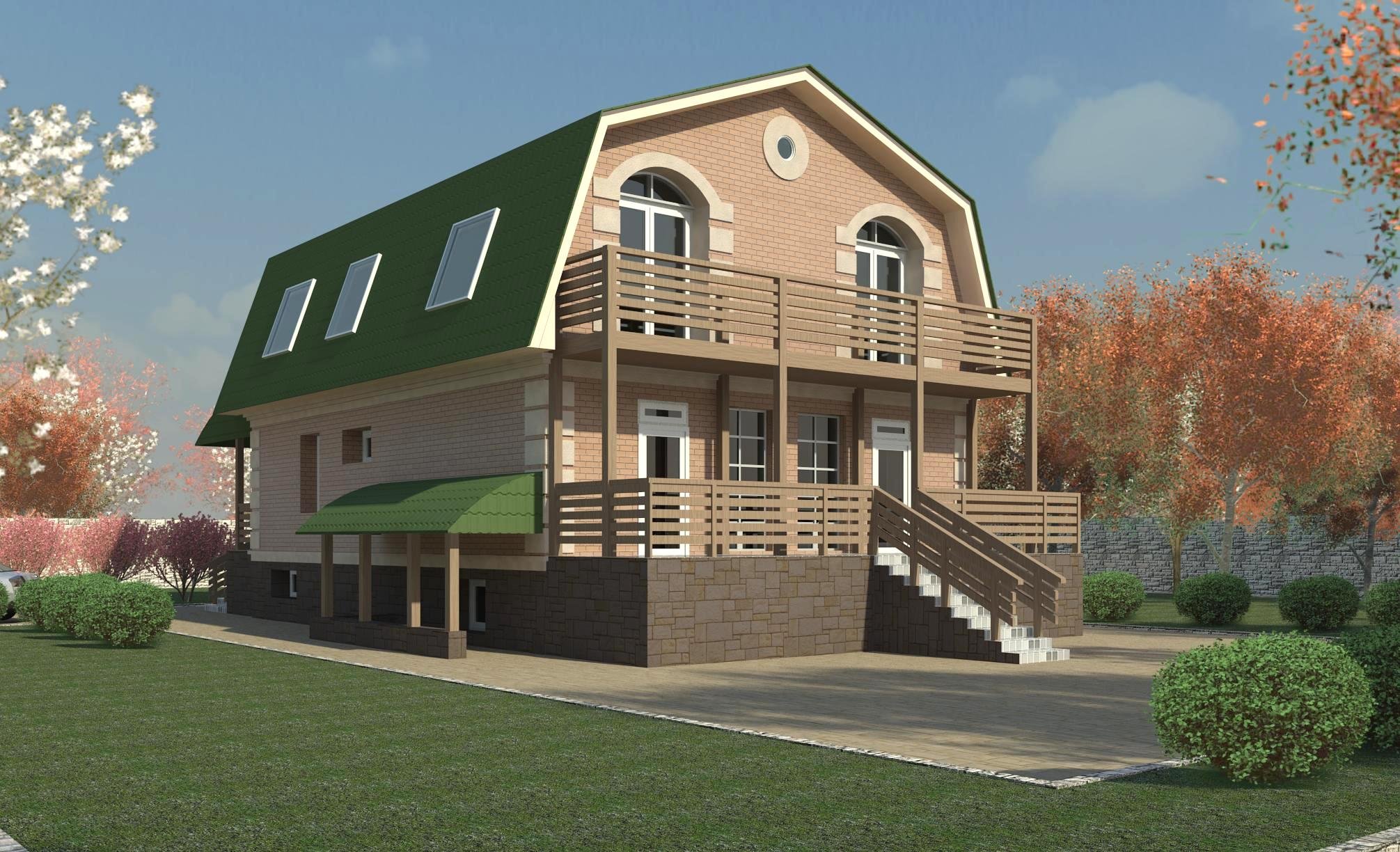 Двухэтажный дом с мансардной крышей