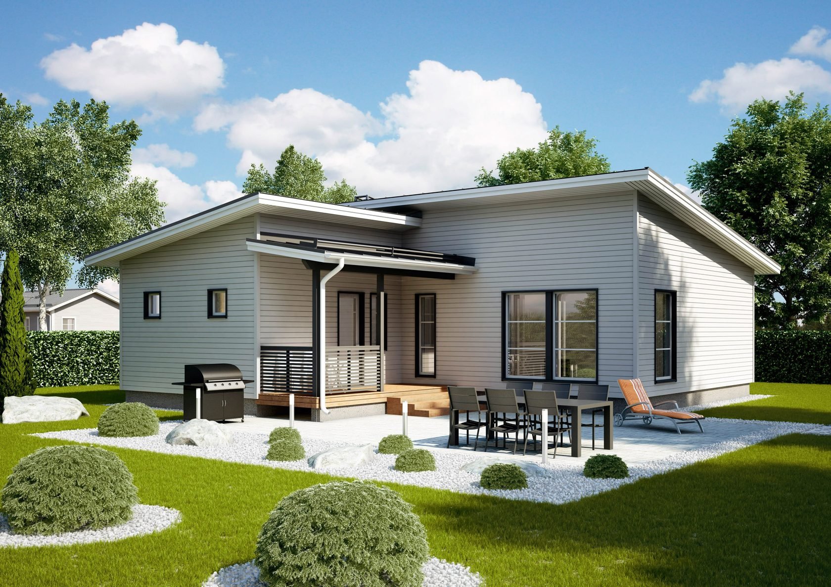 Г-образный дом одноэтажный с односкатной крышей