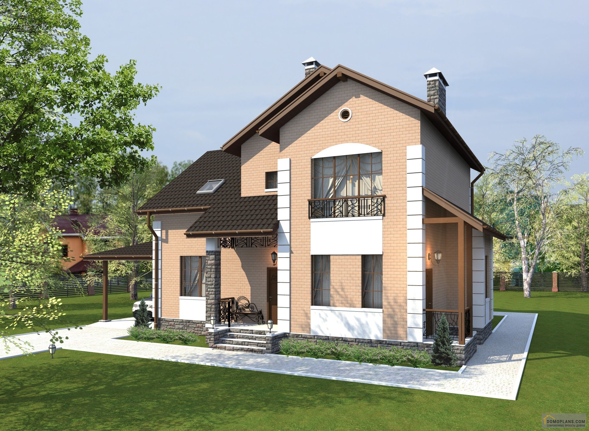 Проекты домов с навесом для машины и террасой двухэтажный
