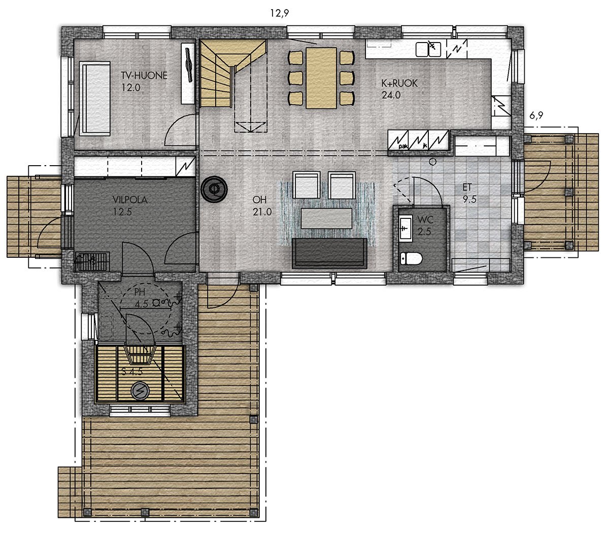 Угловая терраса к дому