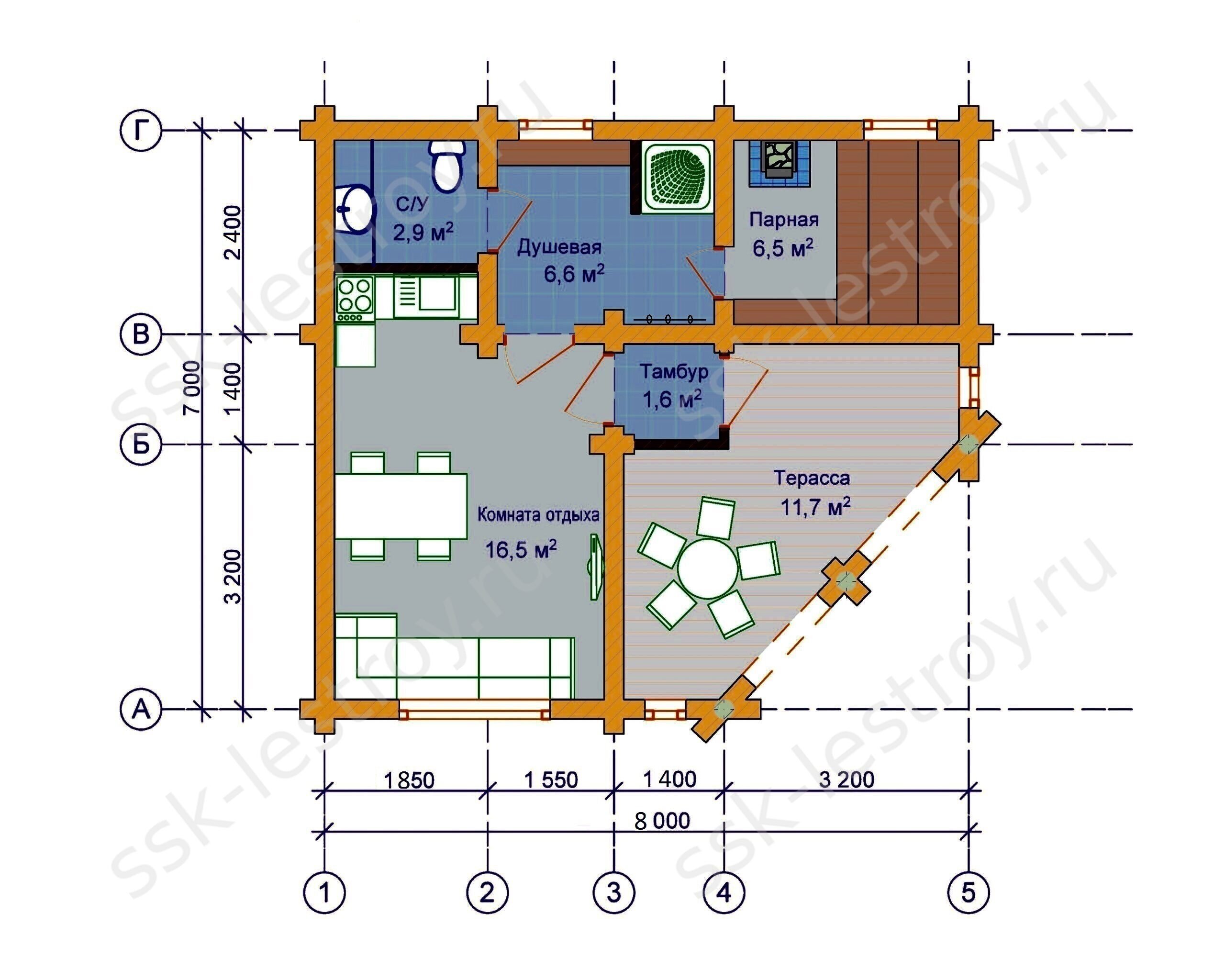 Проект угловой бани из клееного бруса