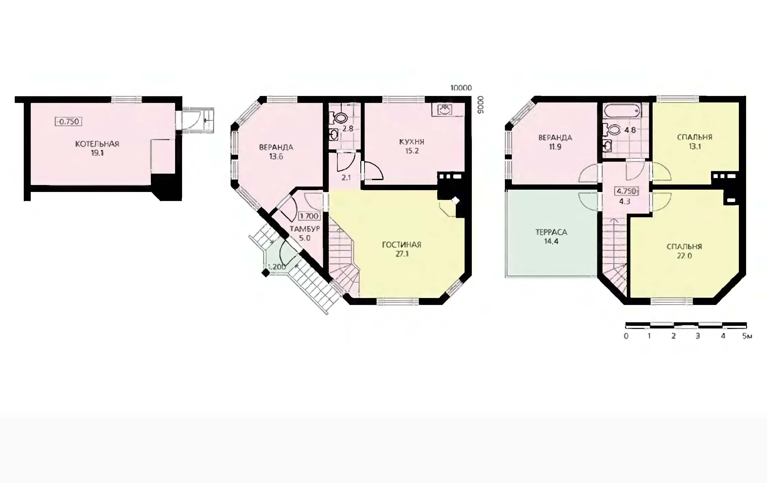 Планировка двухэтажного дома с подвалом и мансардой