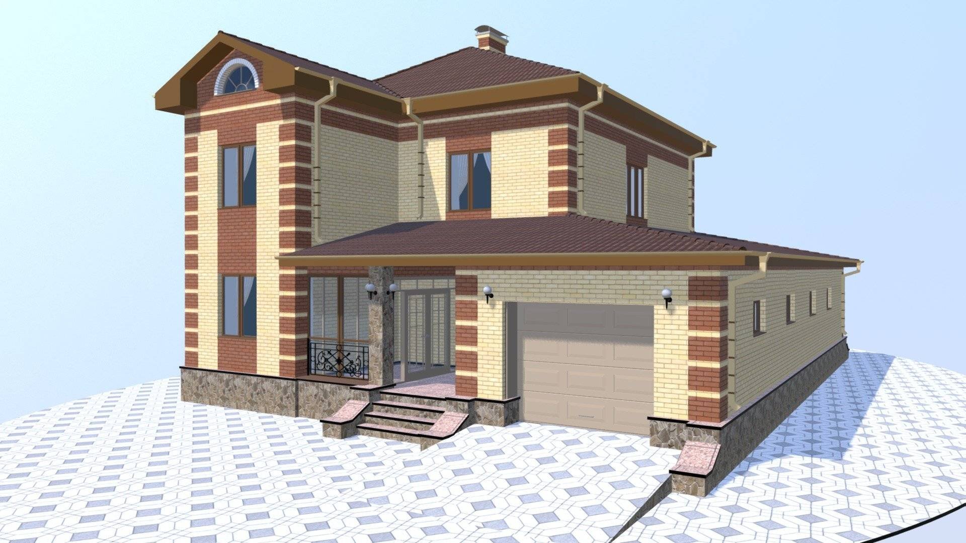 Двухэтажный дом с цоколем