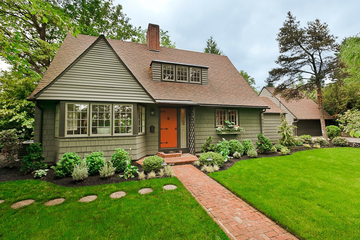 Фасад дома оливкового цвета