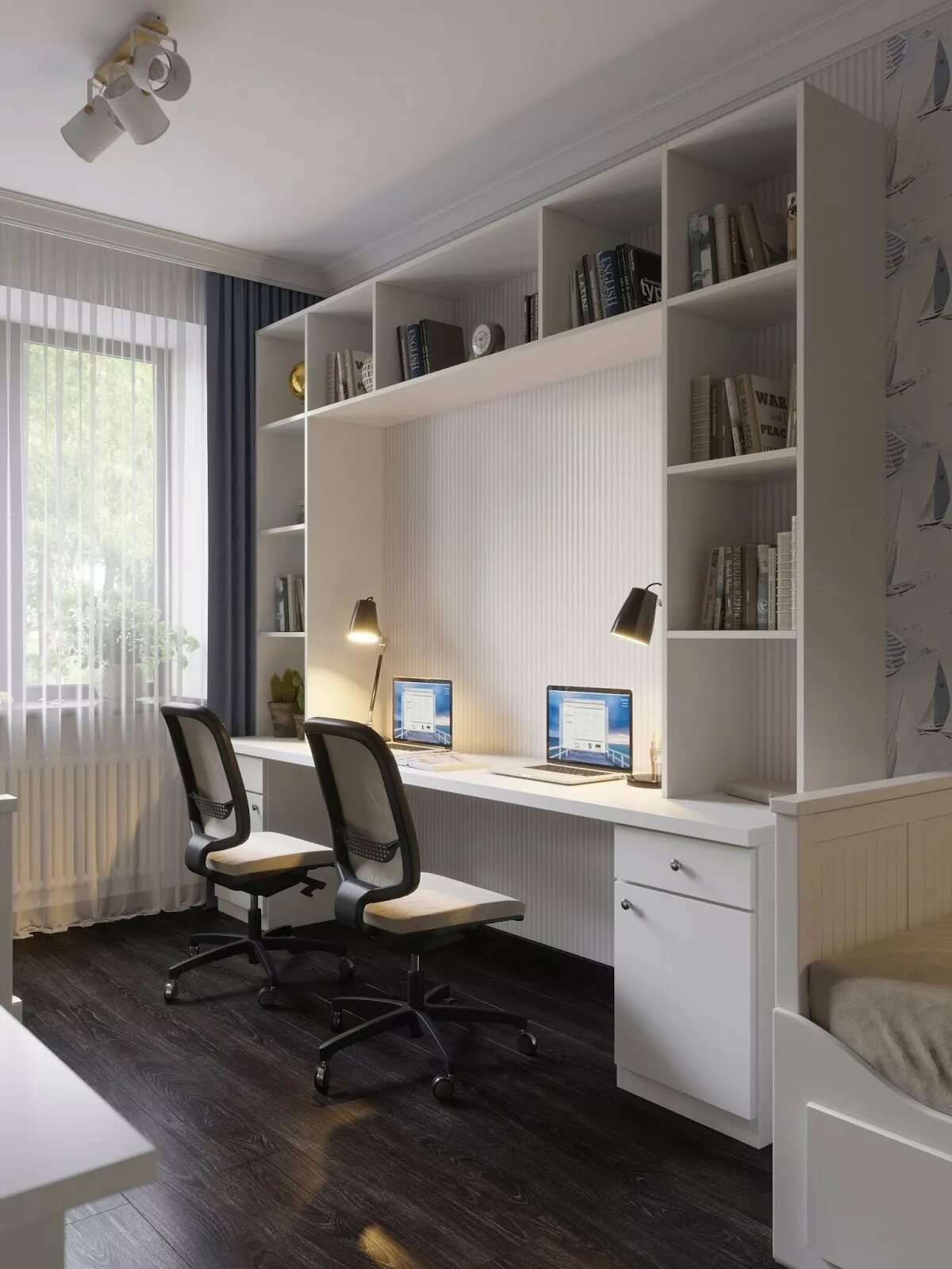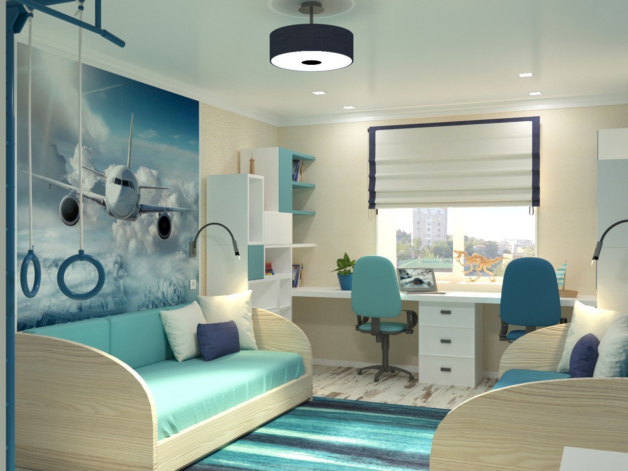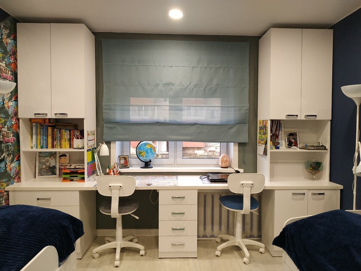 Рабочая зона у окна в детской для двоих