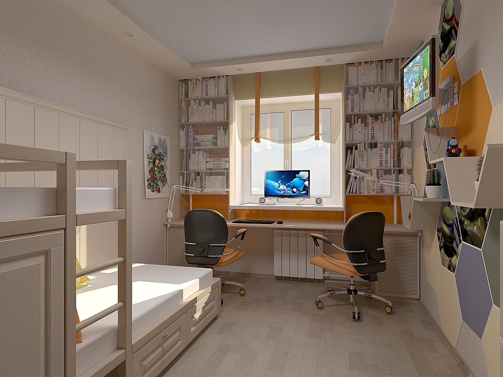 Дизайн комнаты для двух мальчиков школьников