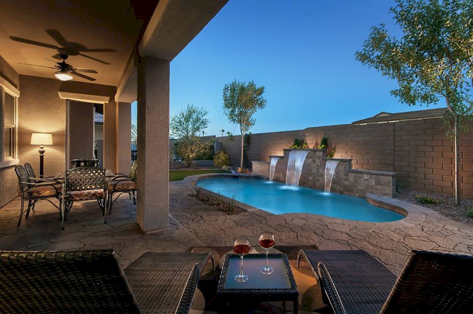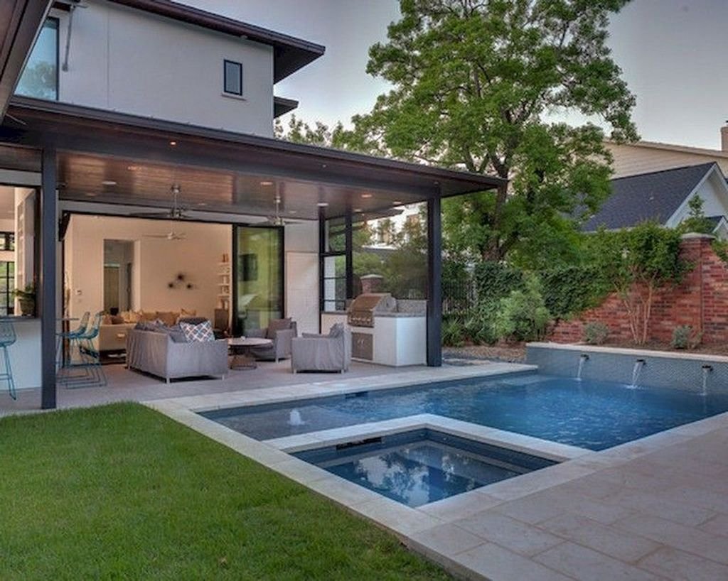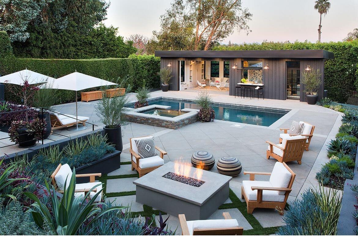 Дизайн двора с бассейном