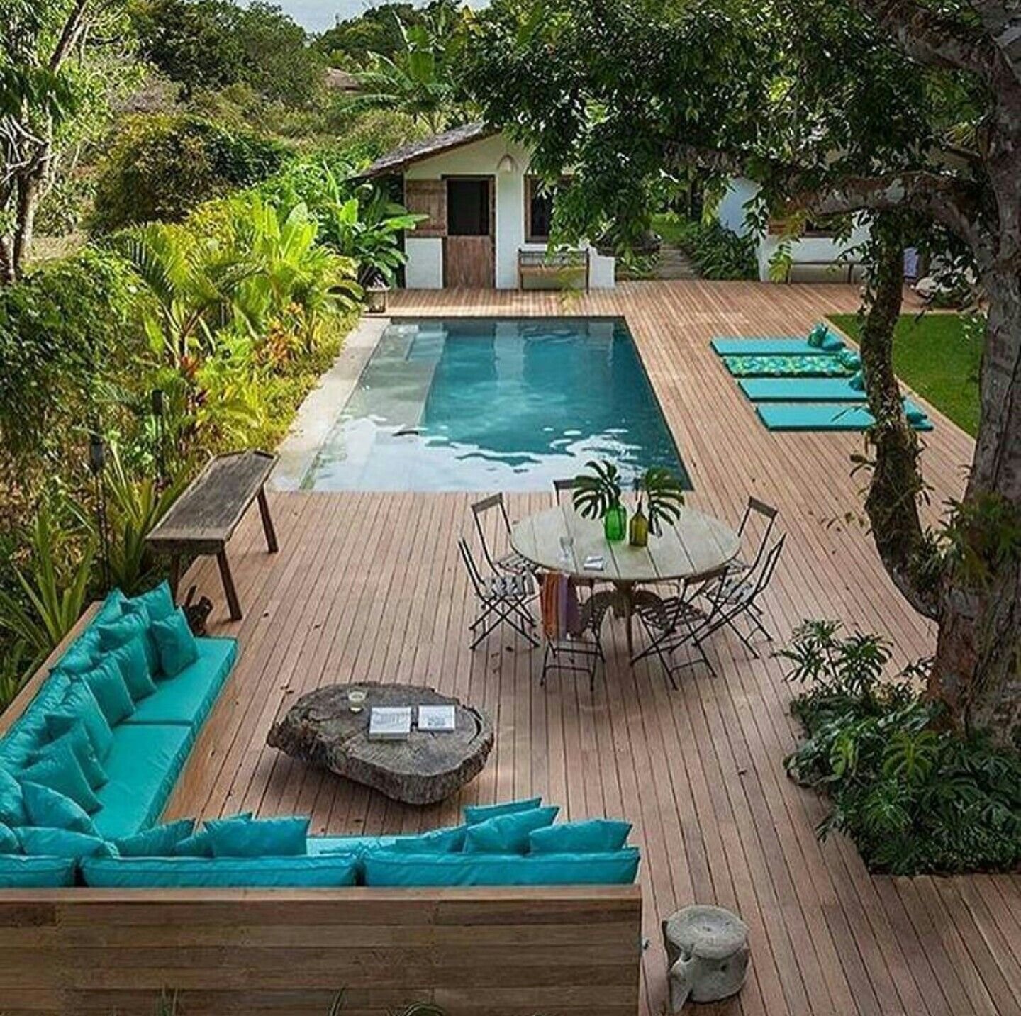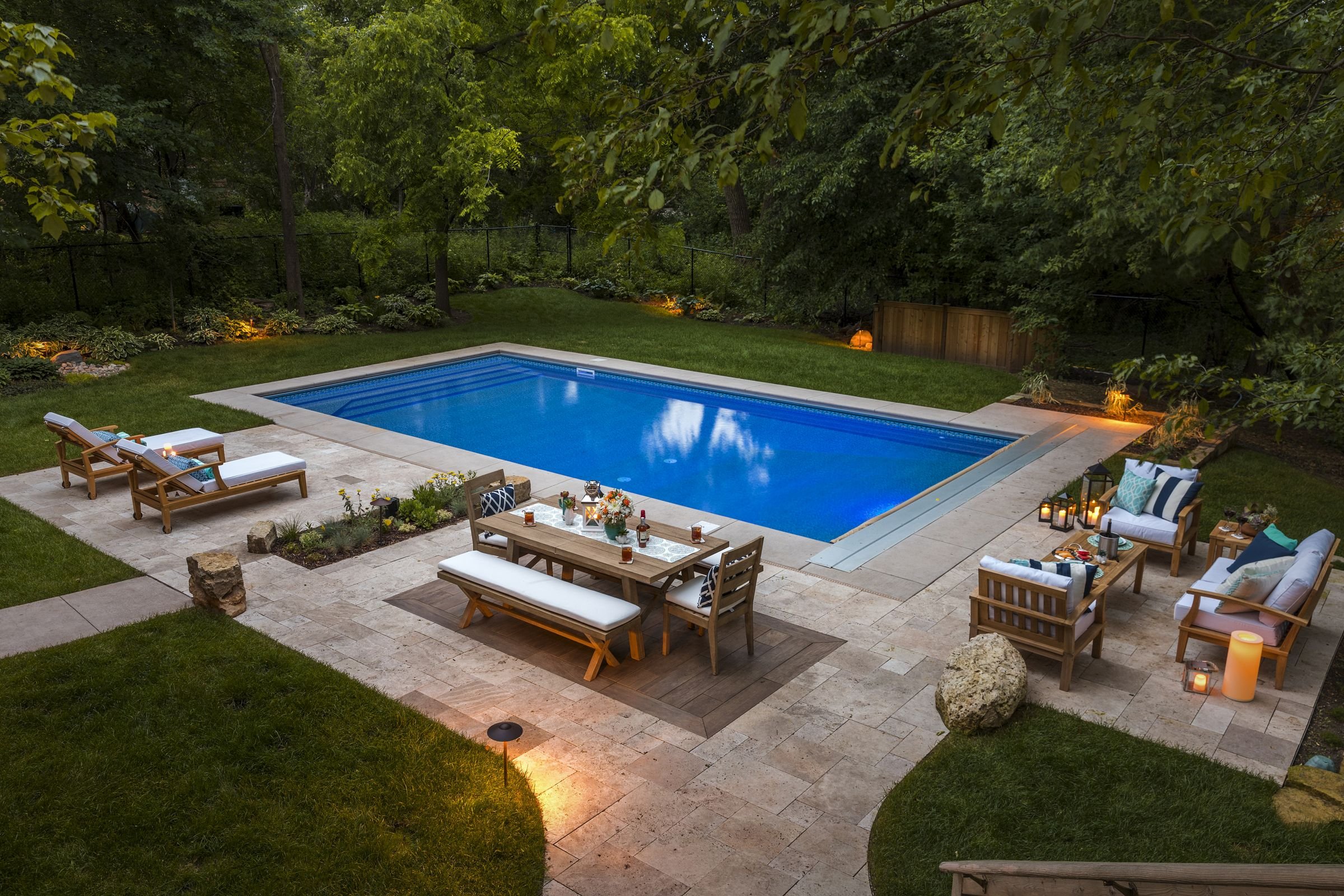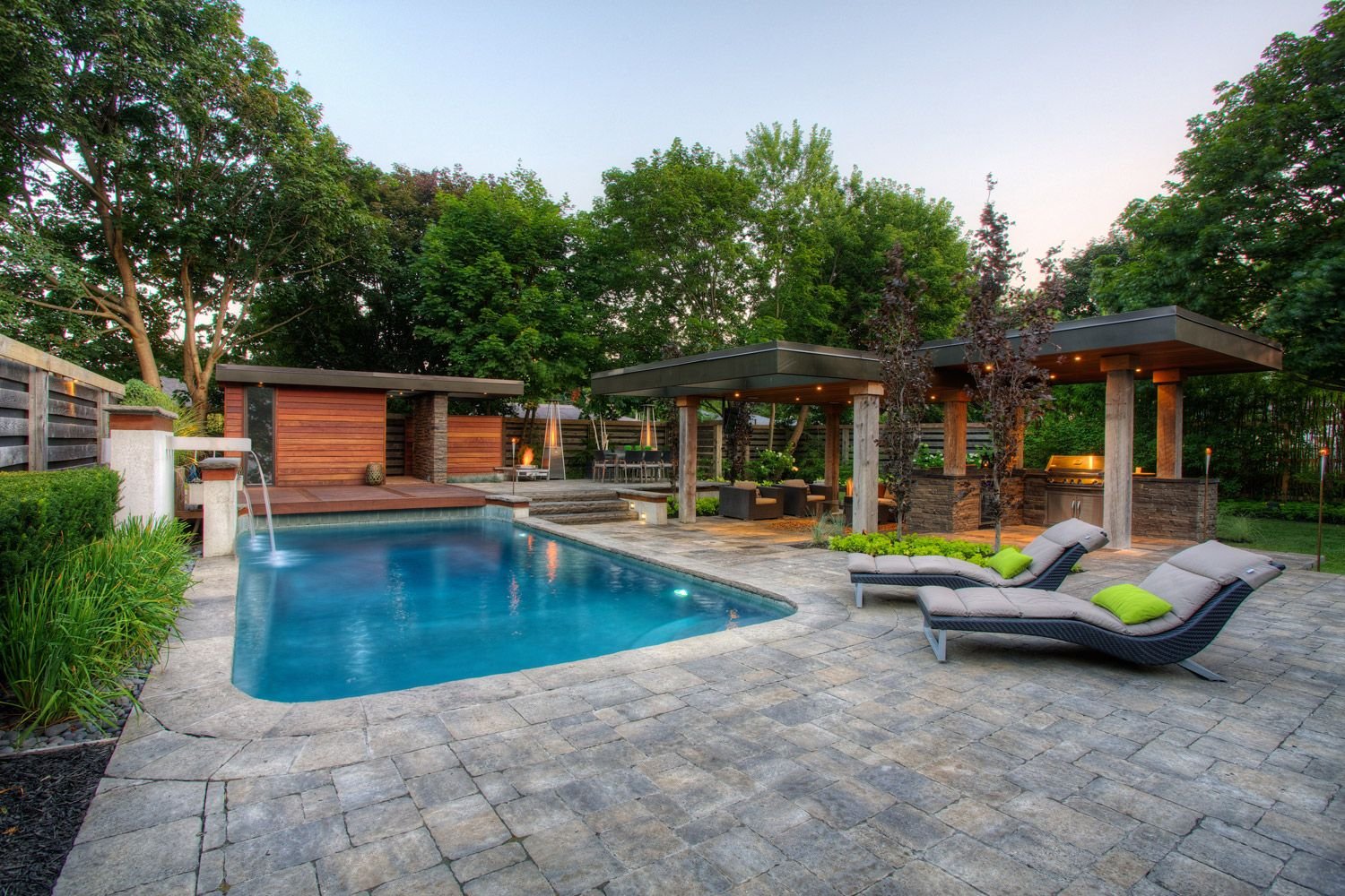 Дизайн двора с бассейном