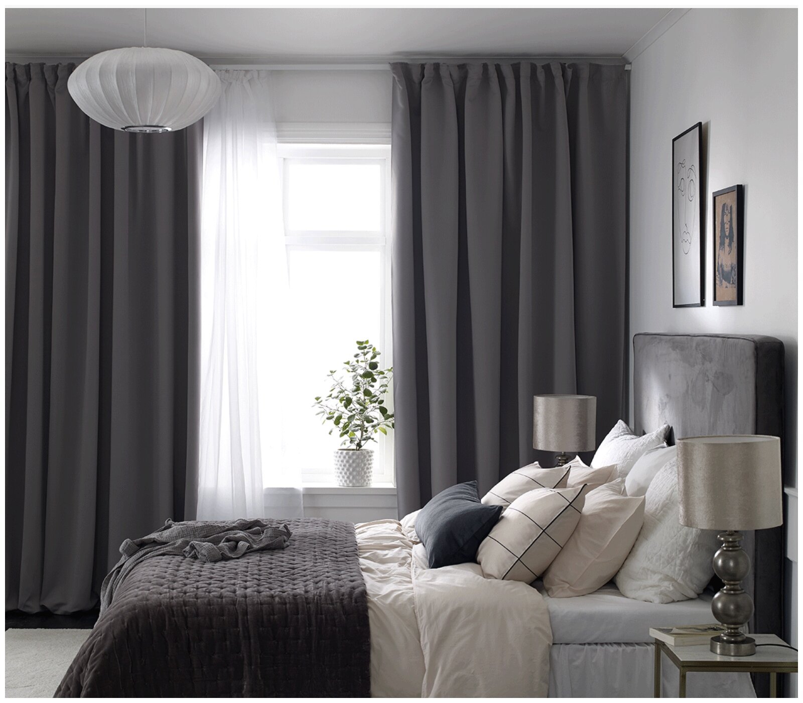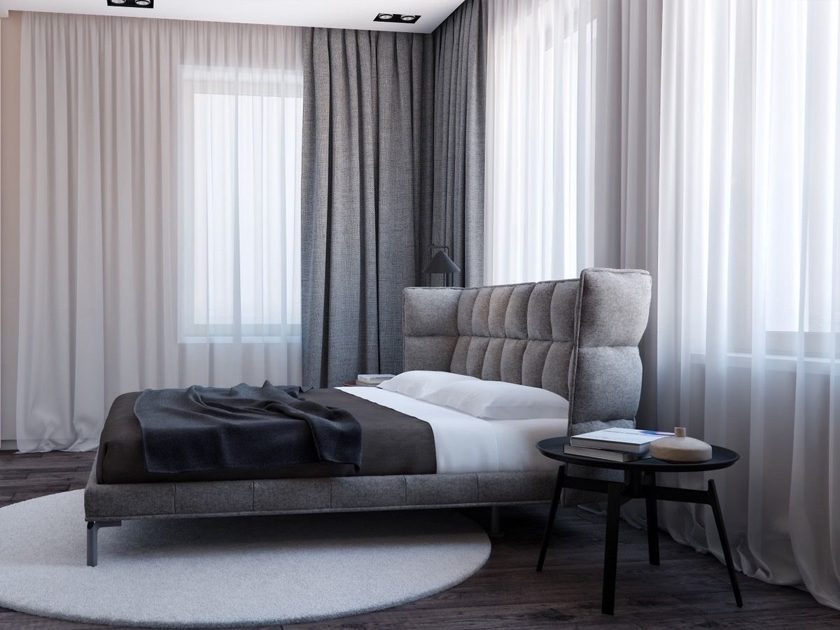 Серые шторы в спальне