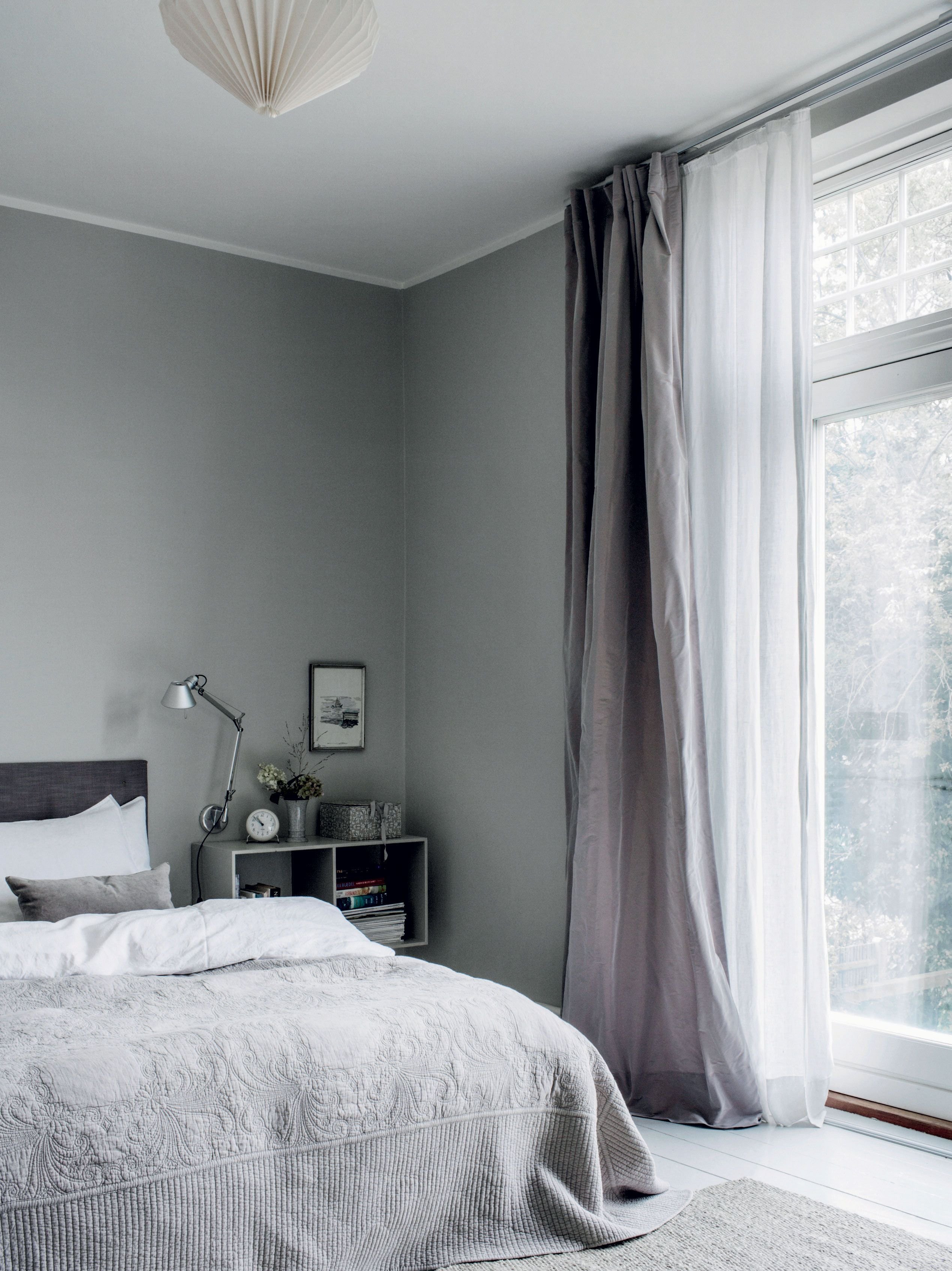 Серые стены в спальне