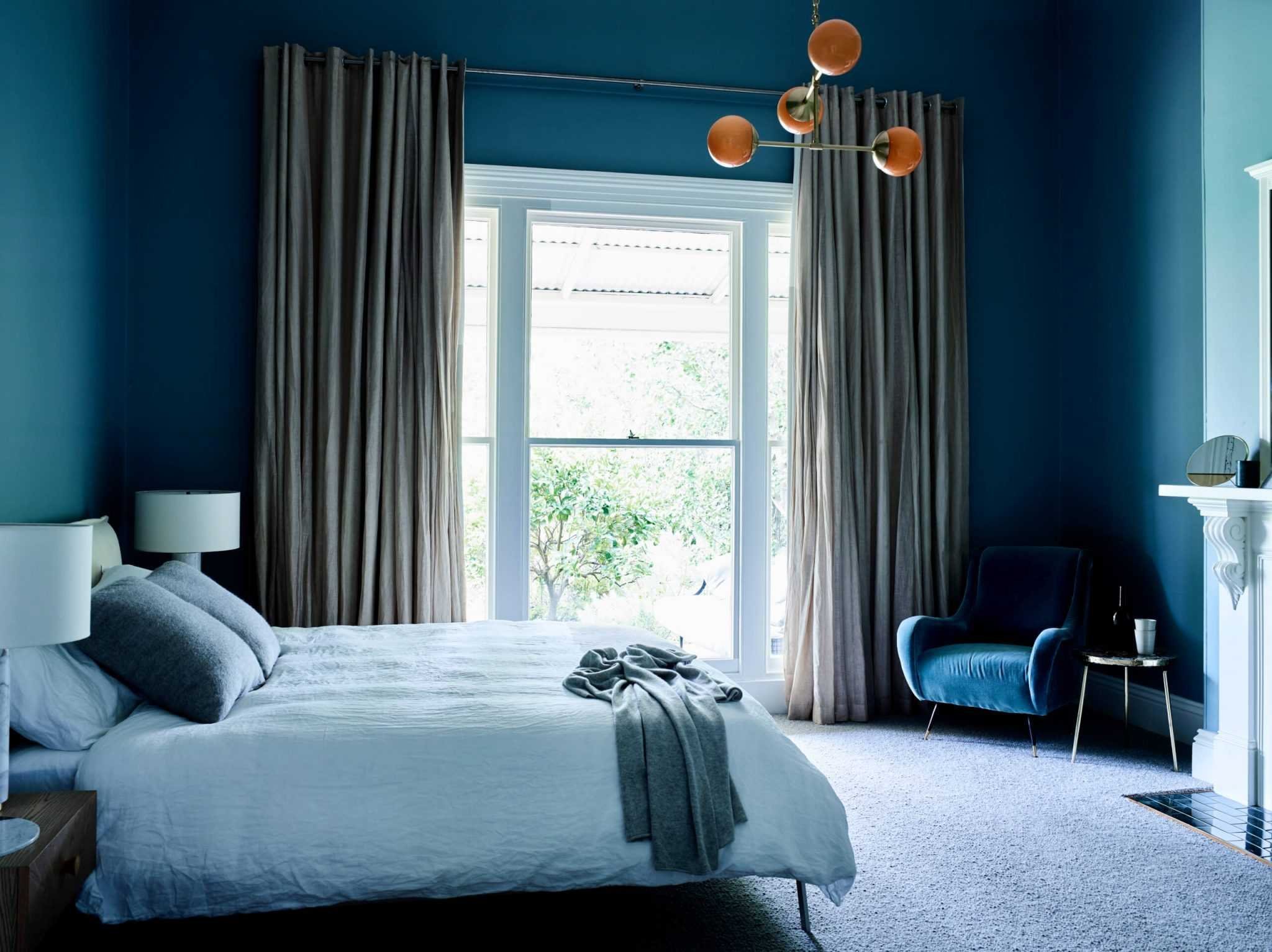 Синие шторы в интерьере