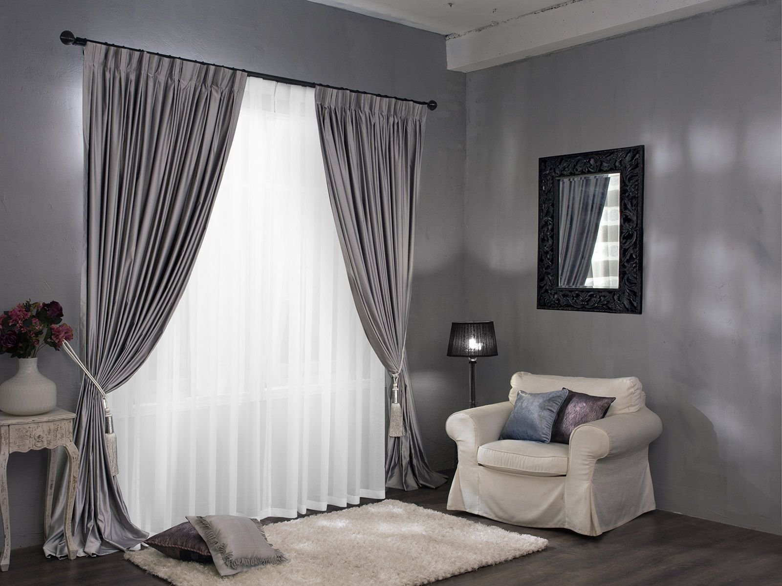 Серые занавески в интерьере