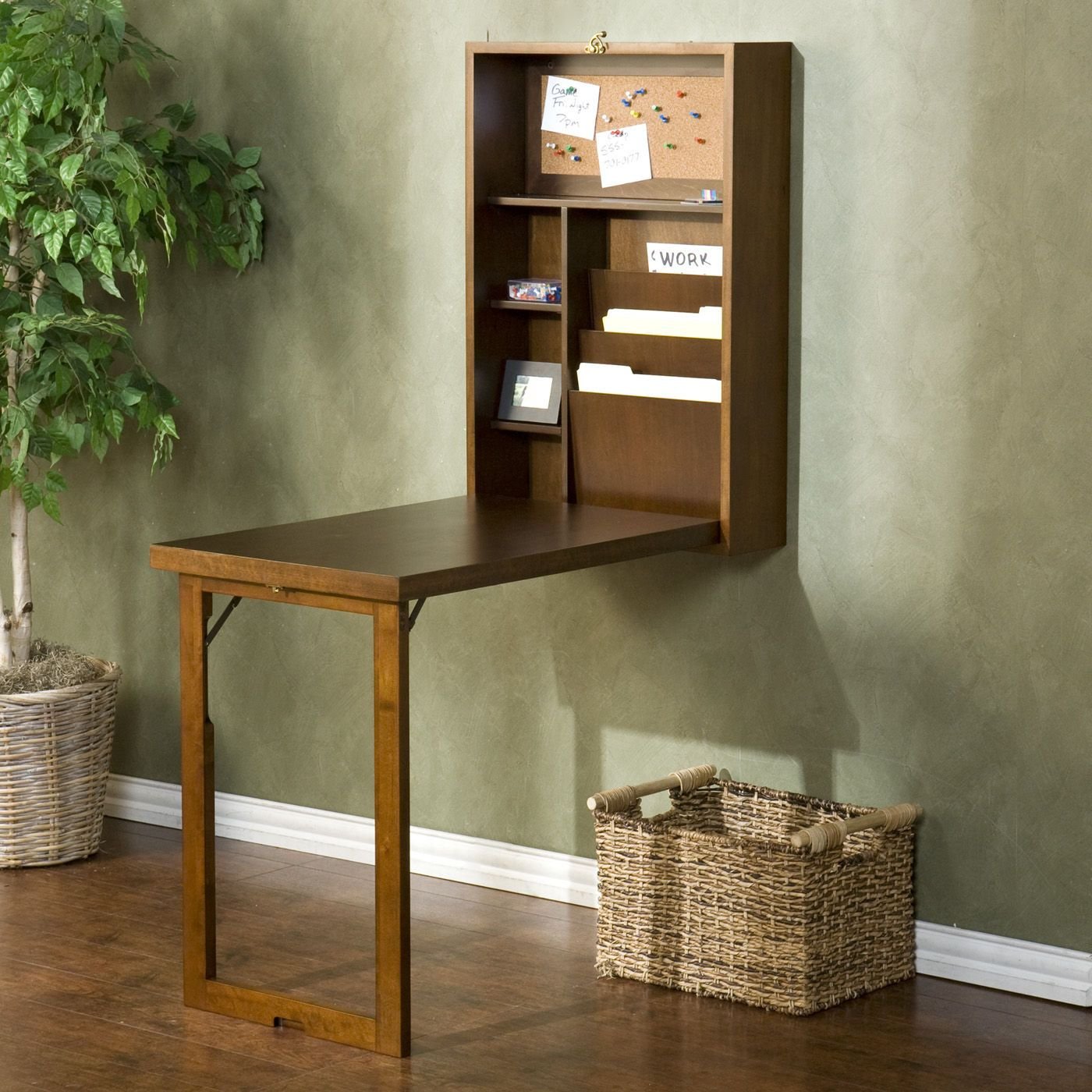 Письменный стол крепится к стене