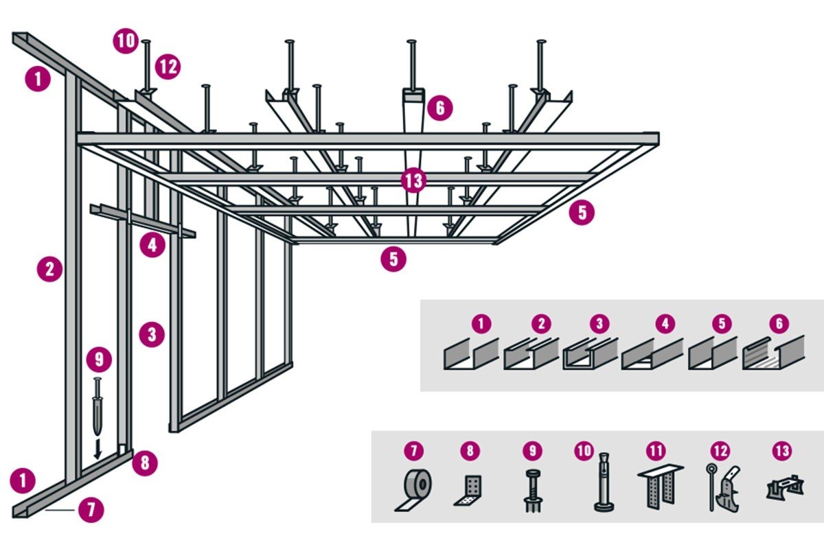 Перегородки из металлопрофиля под гипсокартон Кнауф
