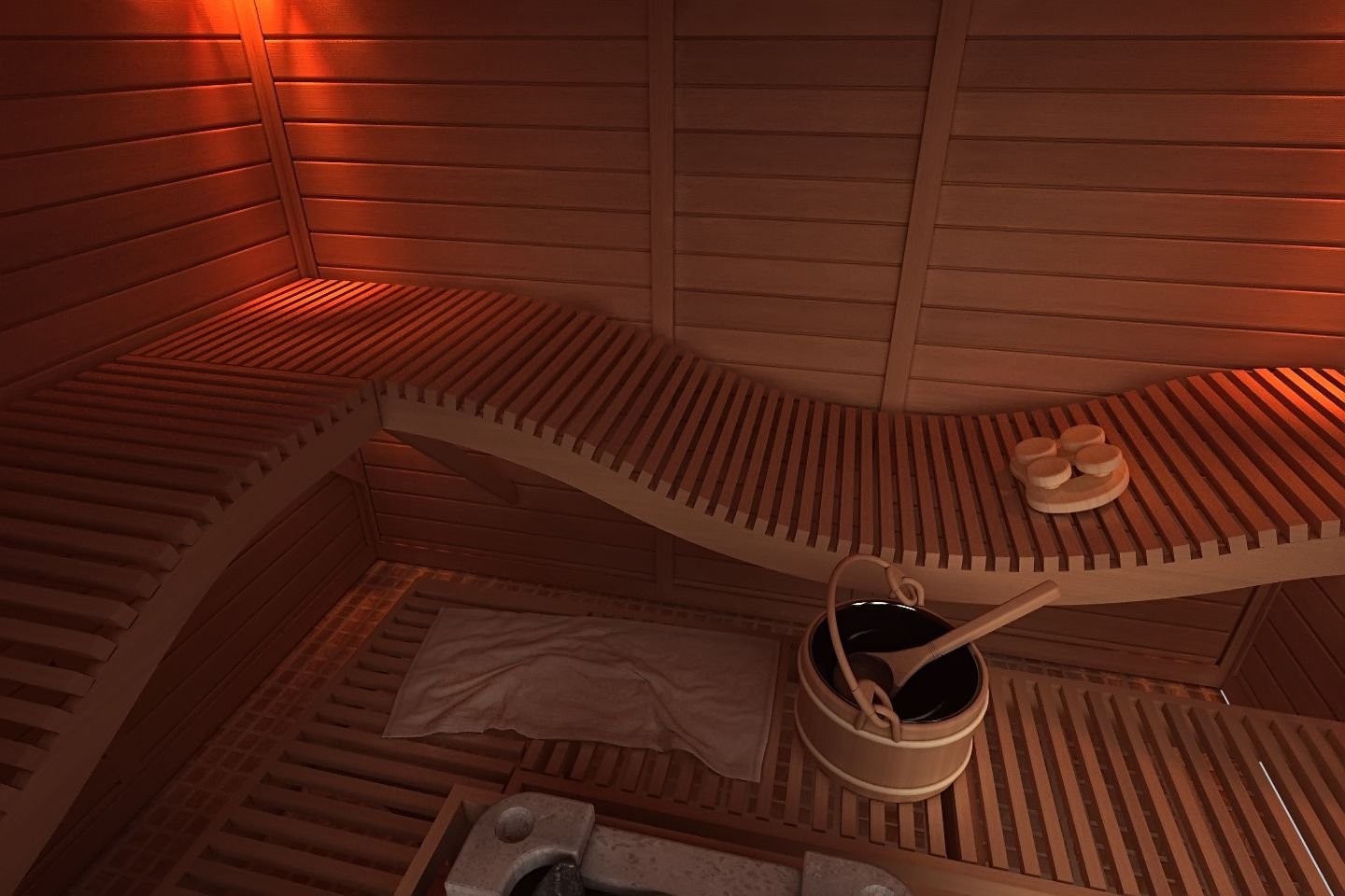 Полукруглый полок в баню