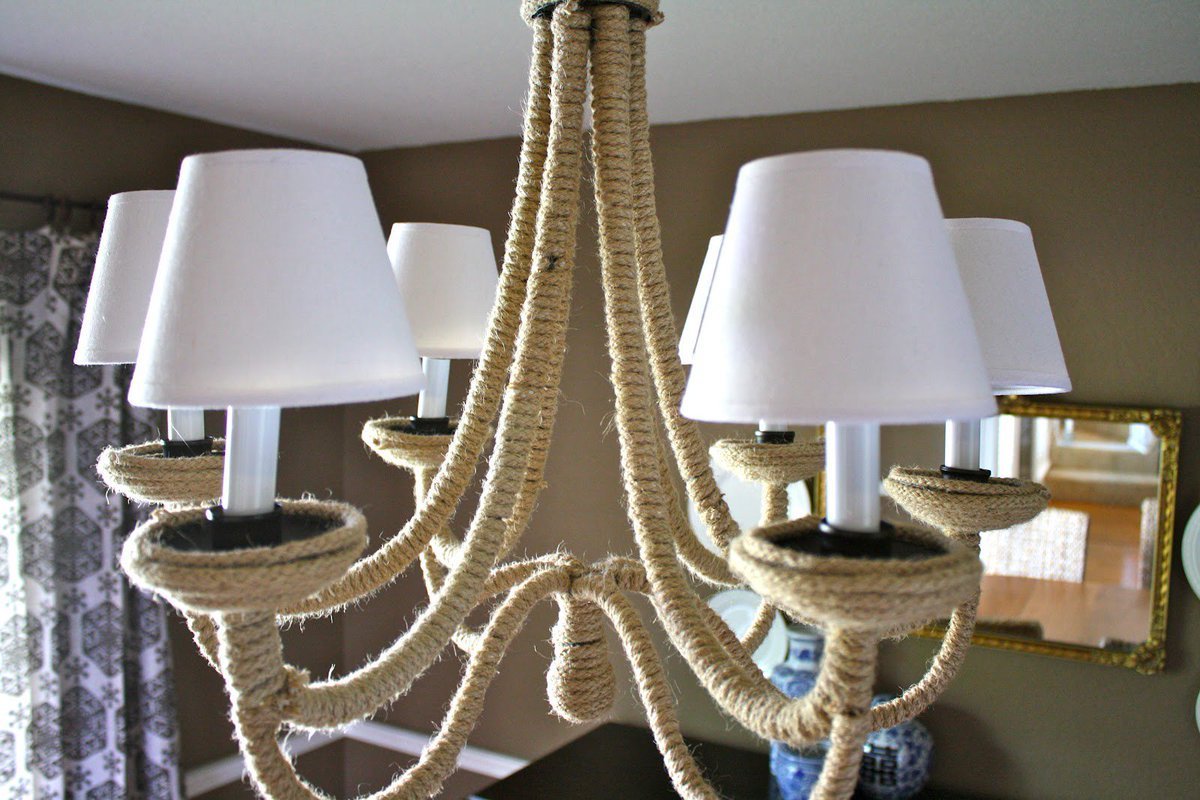 Декор люстры веревкой