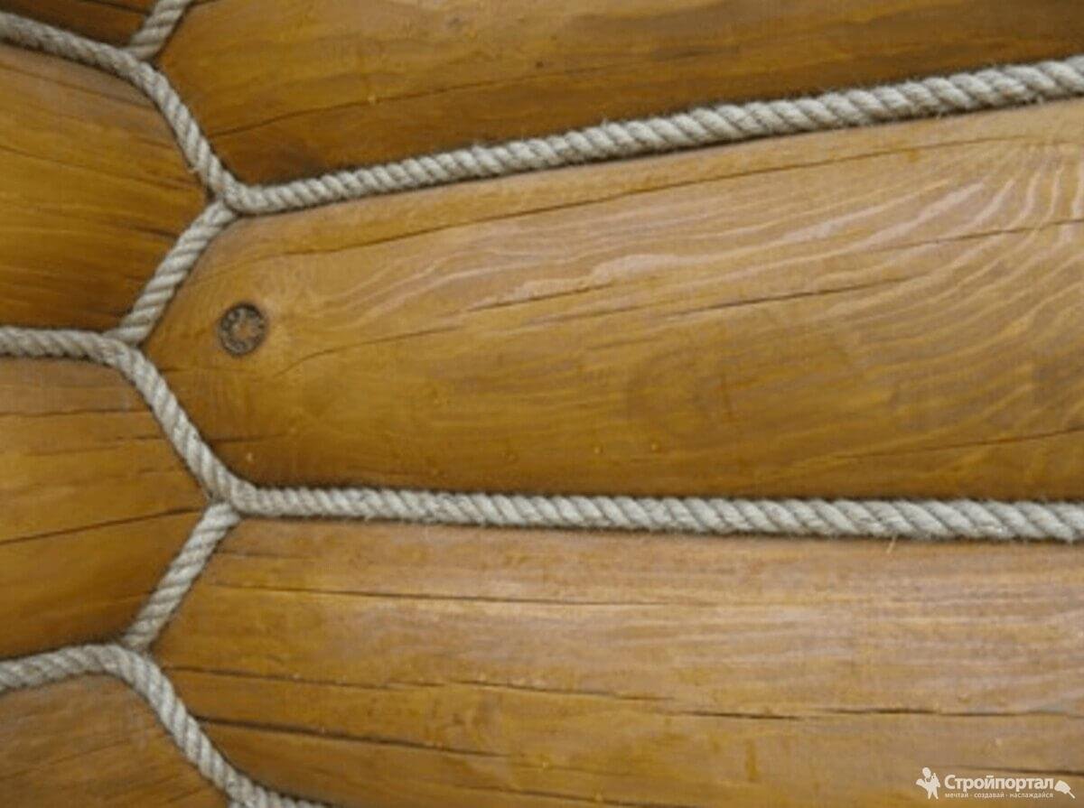 Конопатка оцилиндрованного бревна