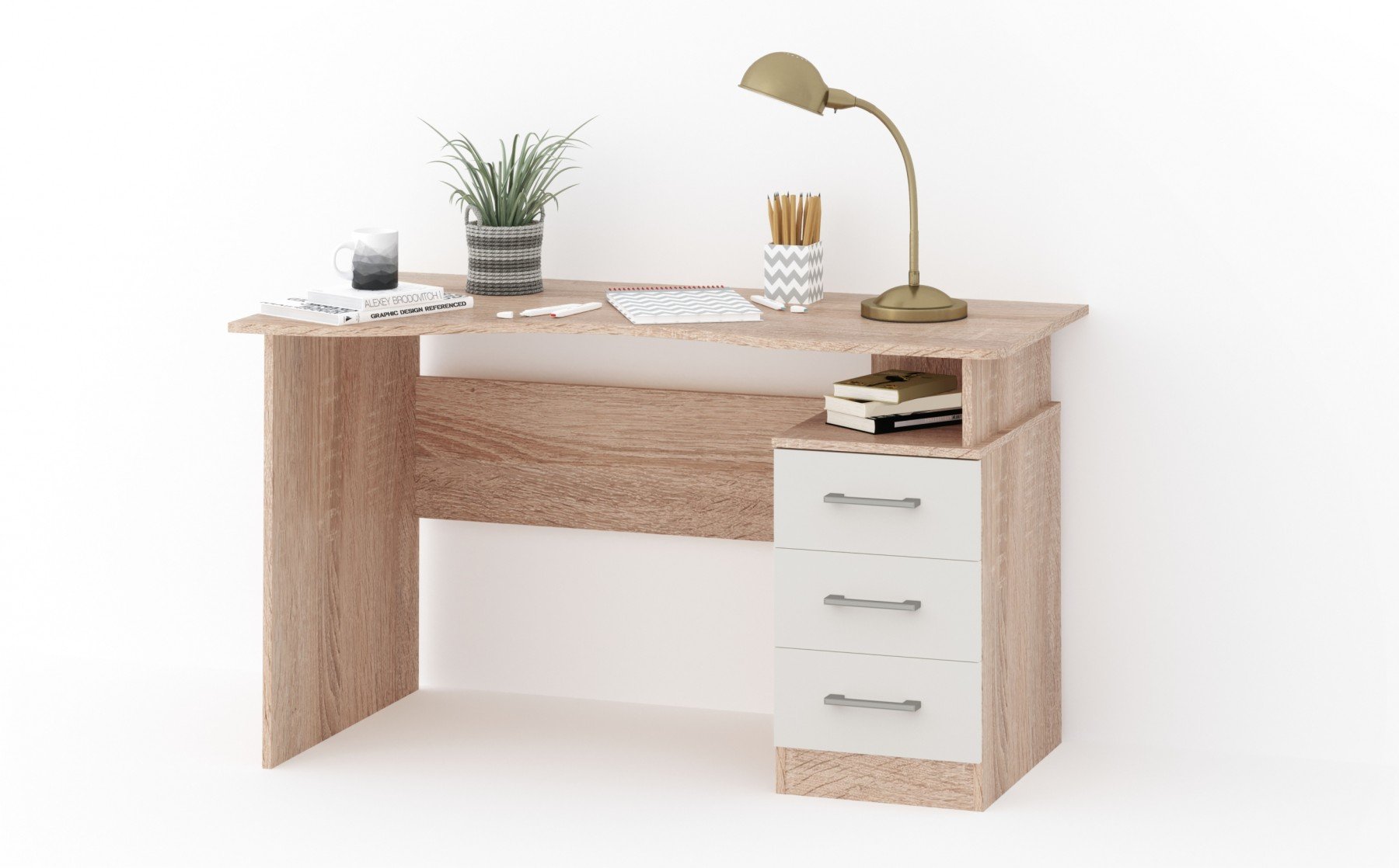 Стол письменный Гарвард 120 3ящ дуб сонома/белый