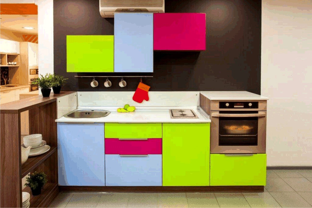 Кухня с разноцветными фасадами