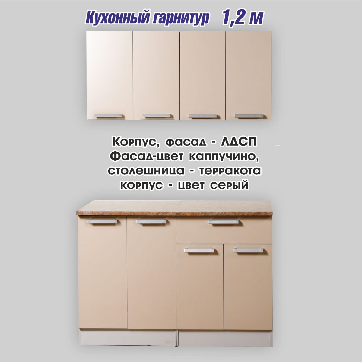 Кухонный гарнитур дачный 1,2м (1.ольха 2.беленый дуб) светофор