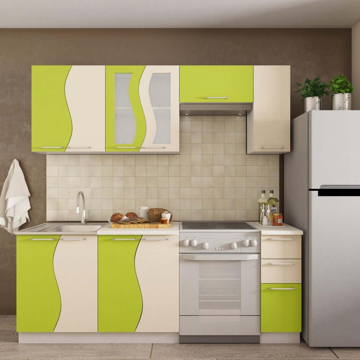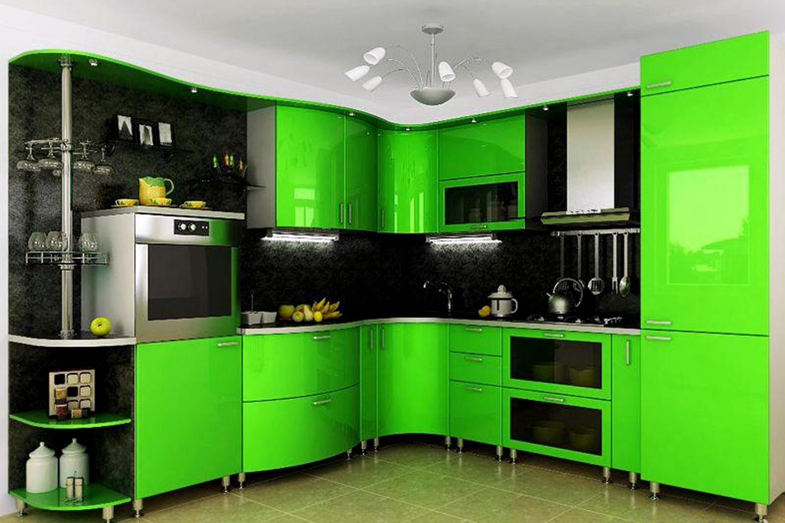 Кухонный гарнитур зеленого цвета