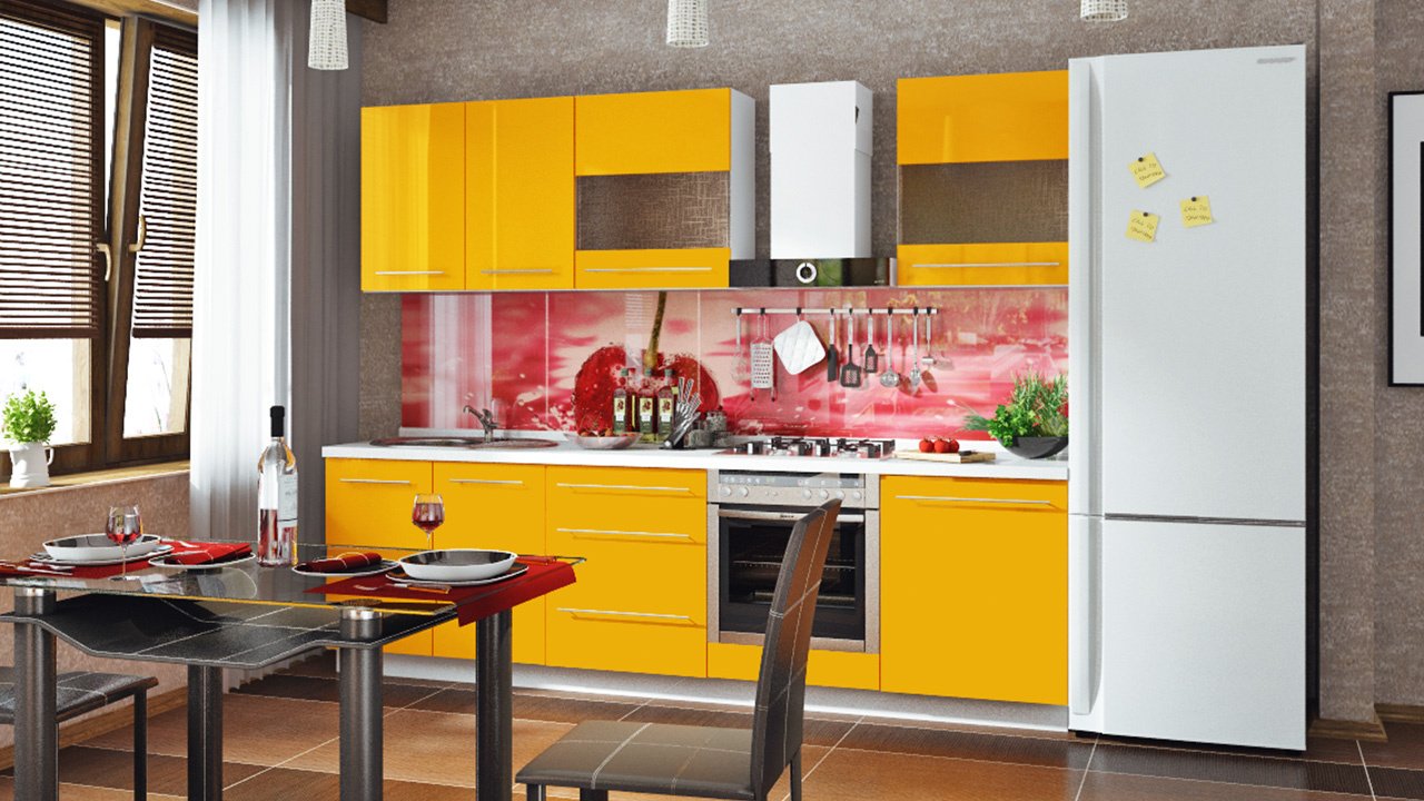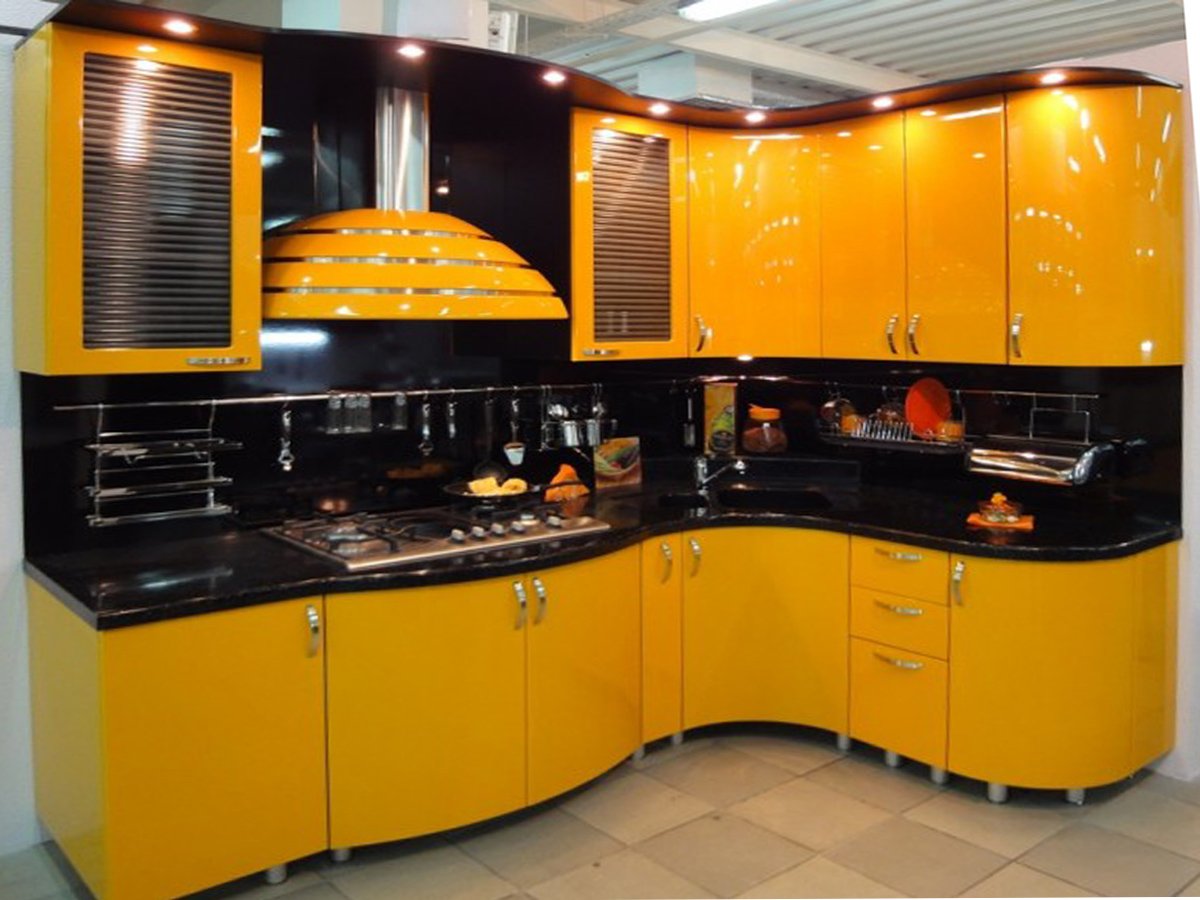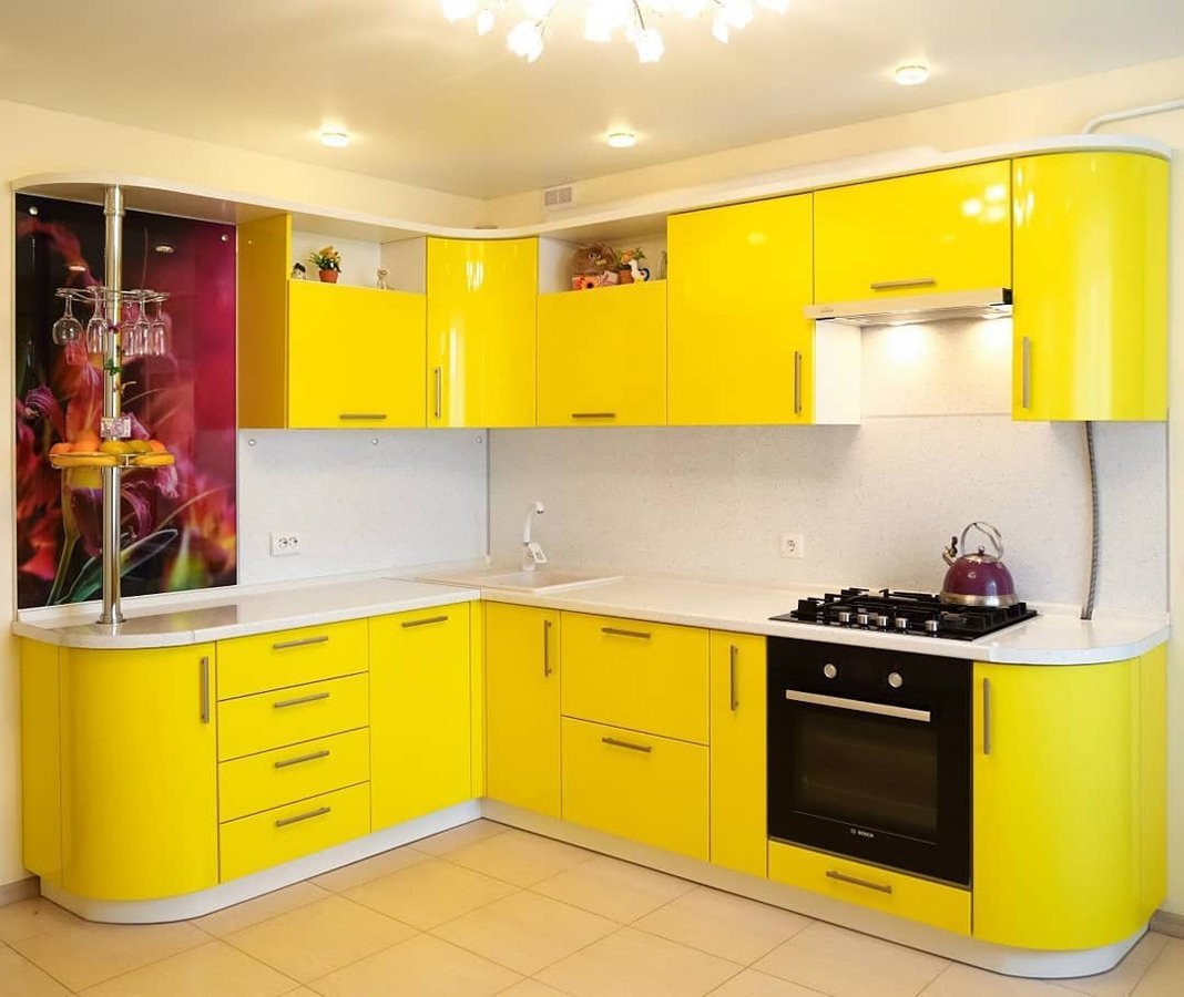 Желтая угловая кухня