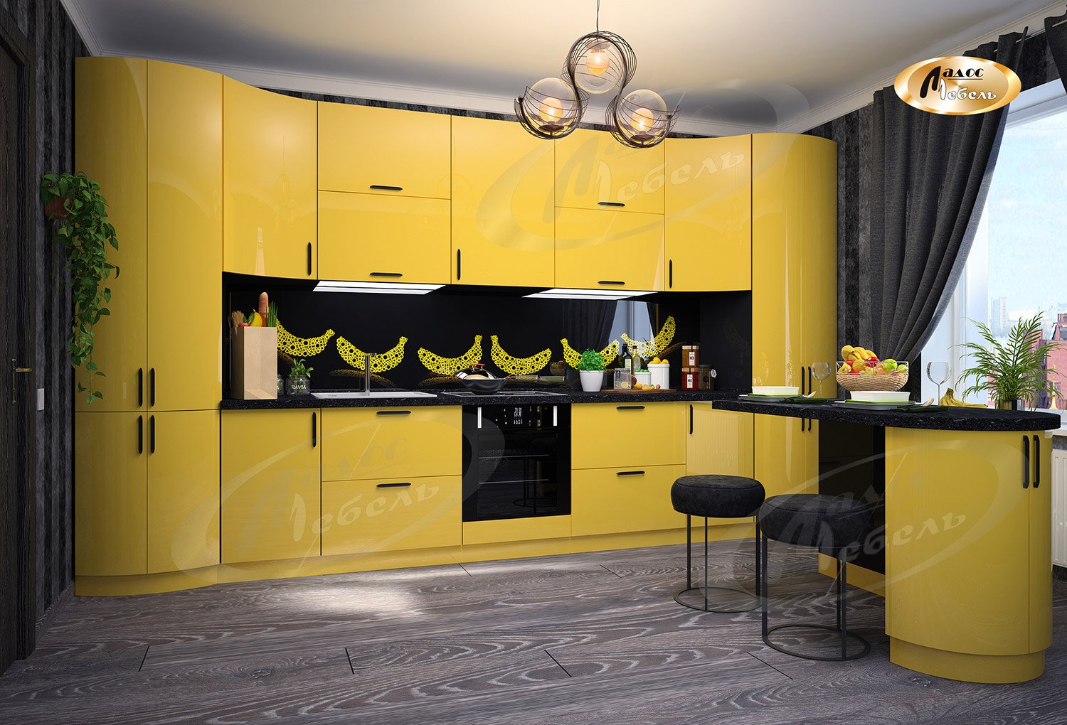Кухонный гарнитур с радиусными фасадами