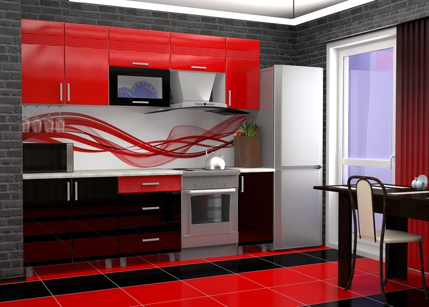 Черно красная кухня