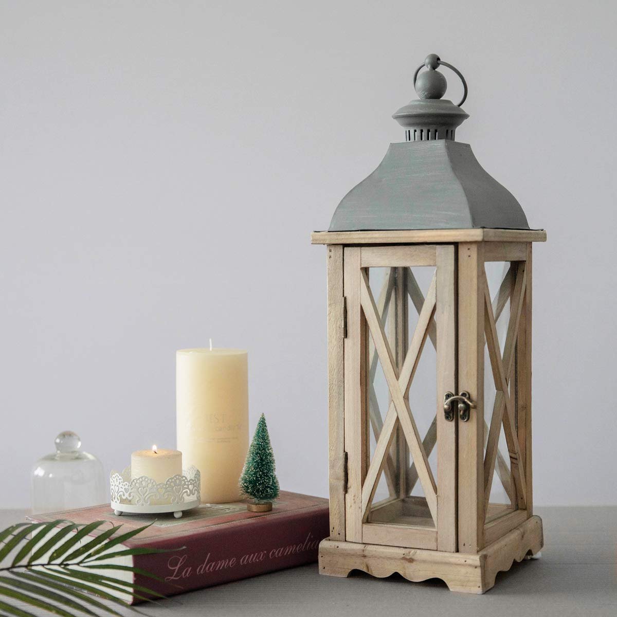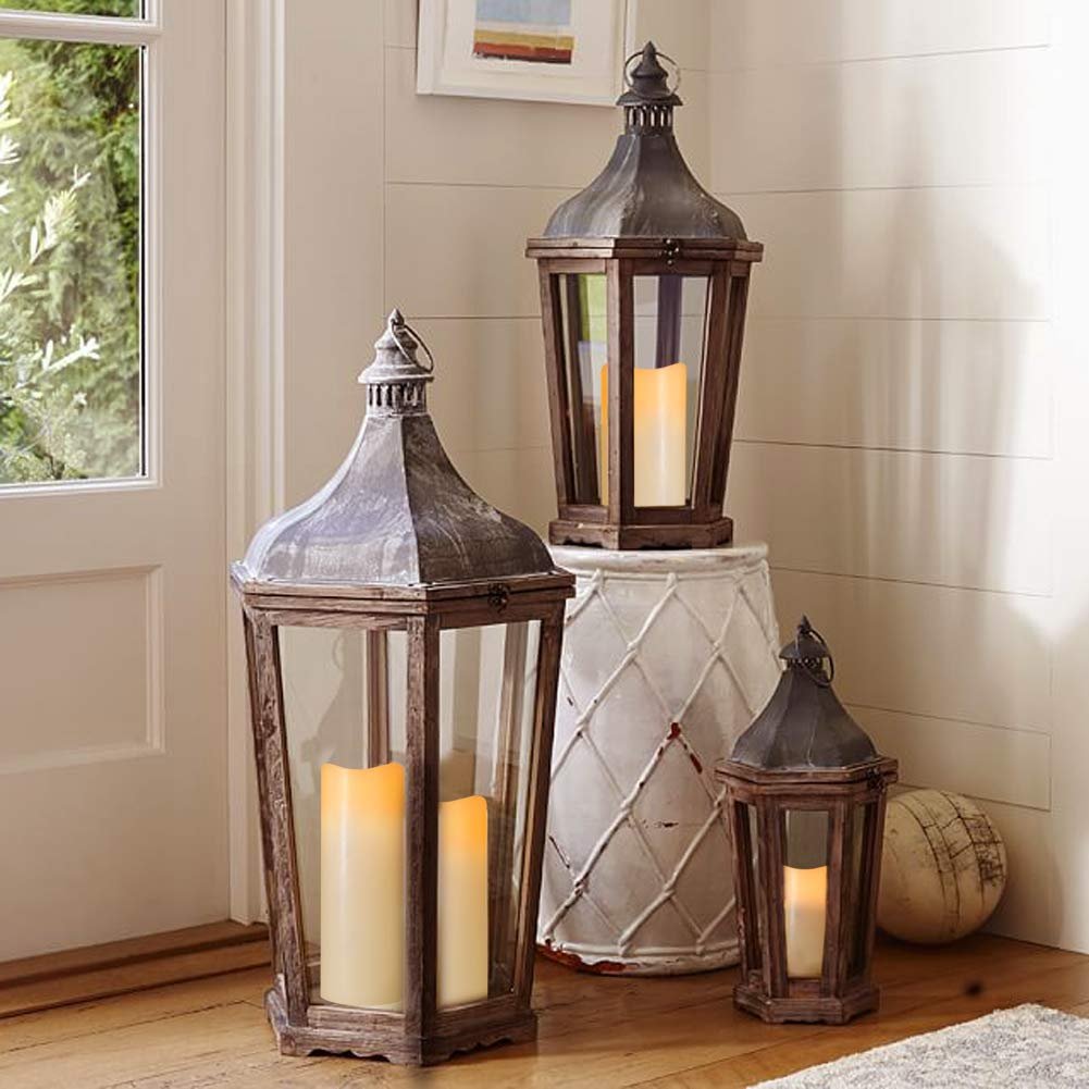 Деревянный фонарь со свечой в интерьере гостиной