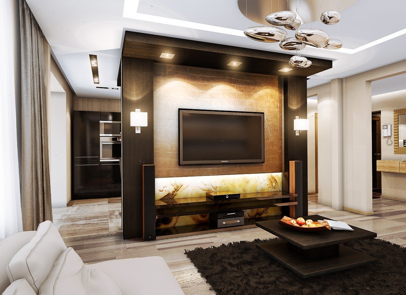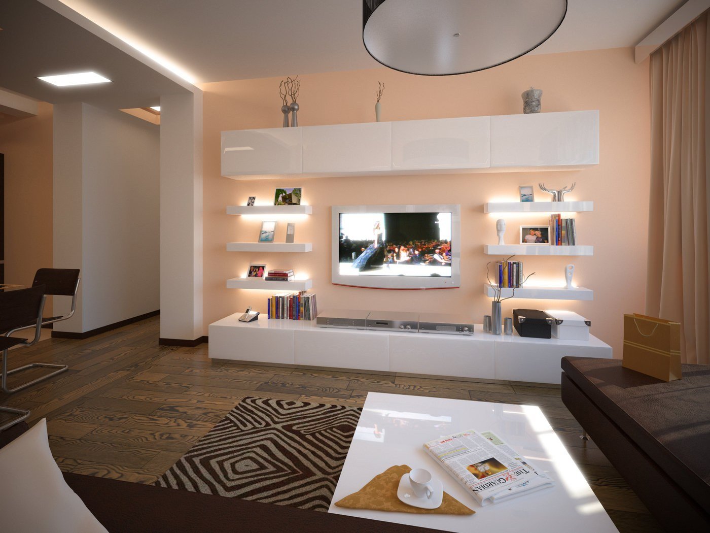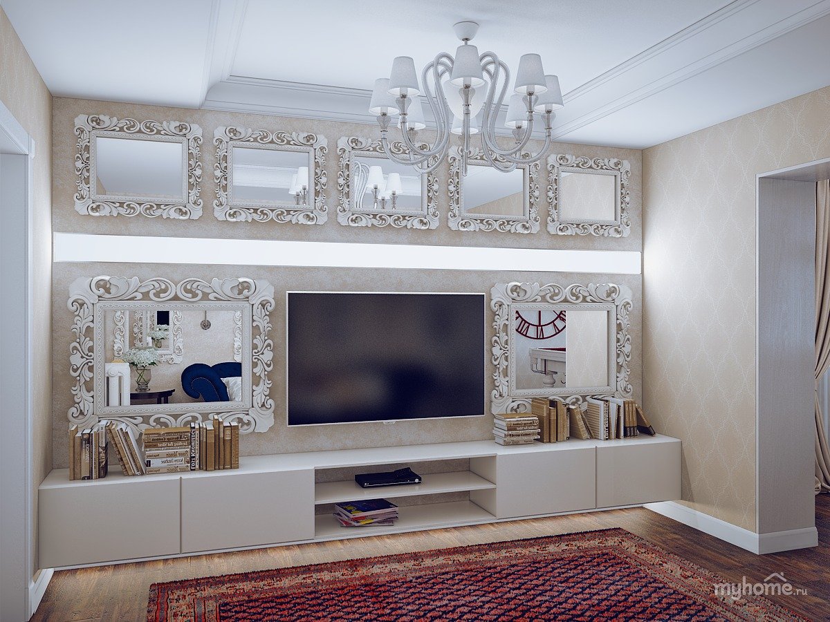 Стена под телевизор в гостиной