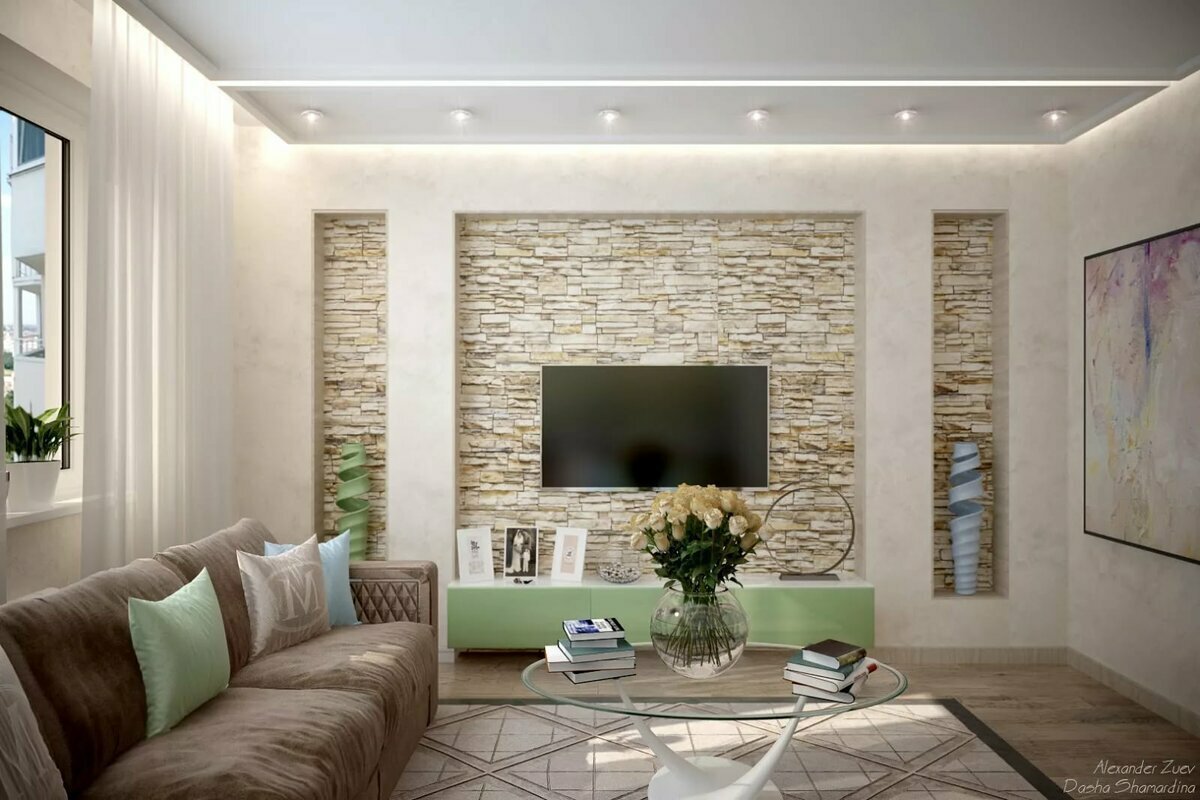 Отделка гостиной декоративным камнем