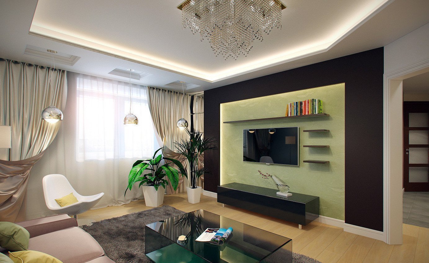 Гостиная с телевизором на стене