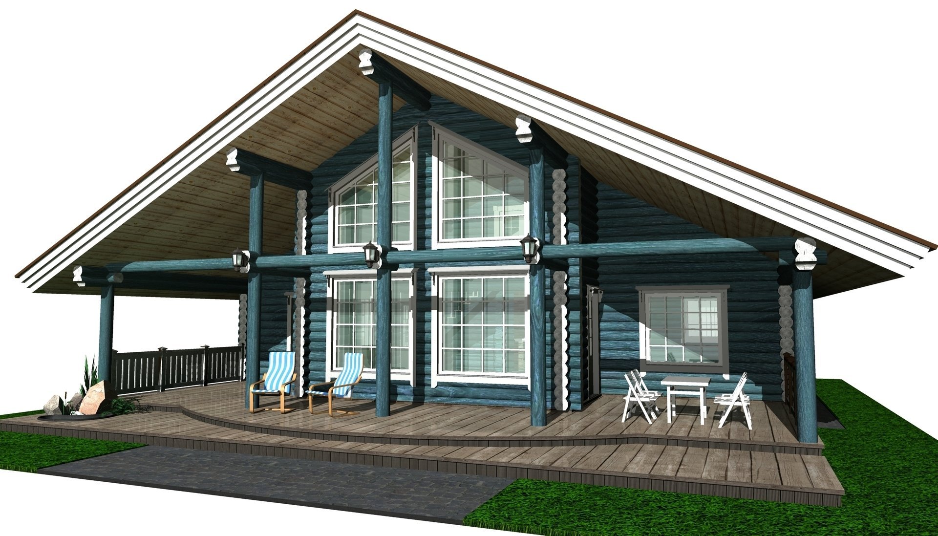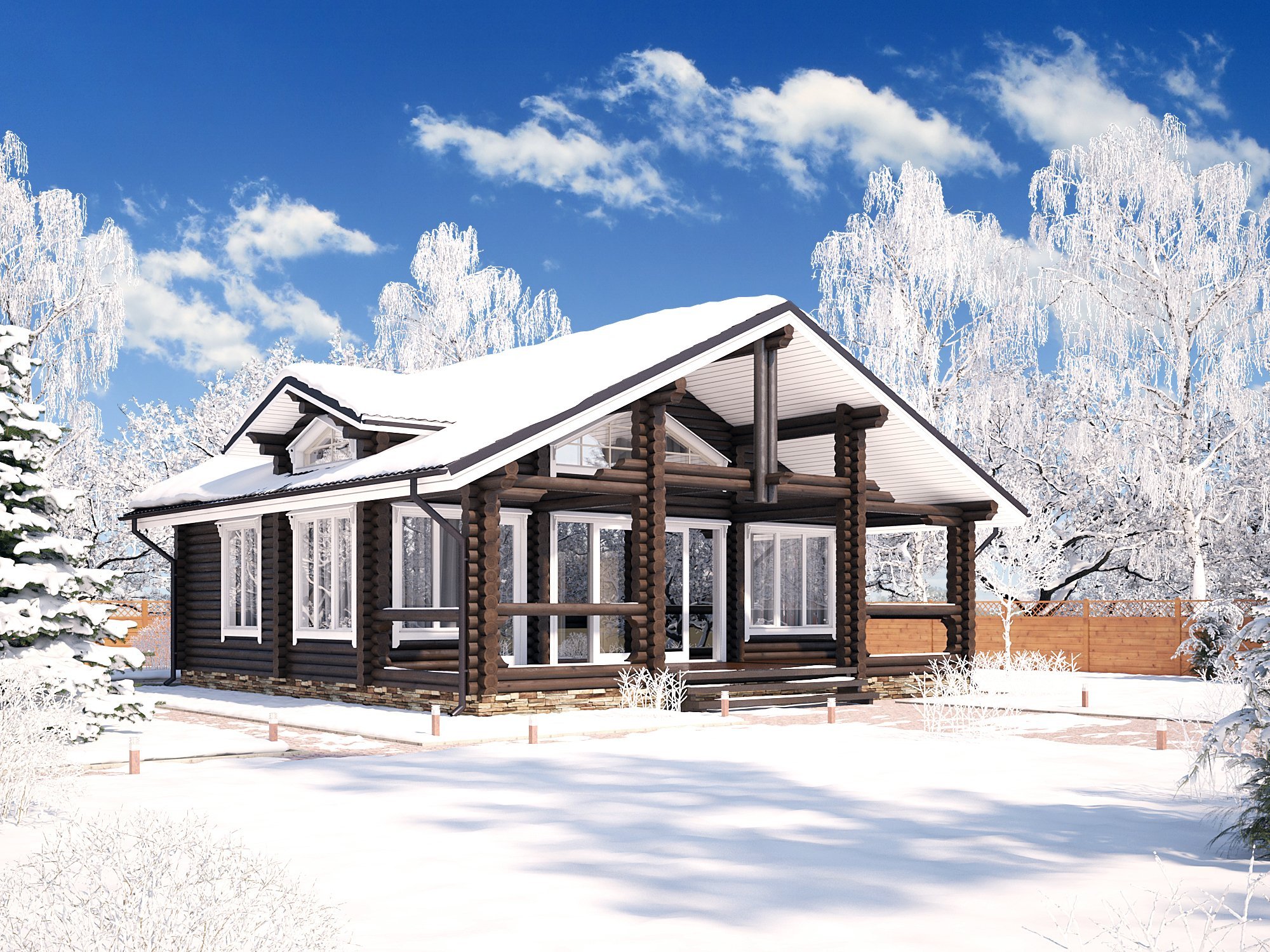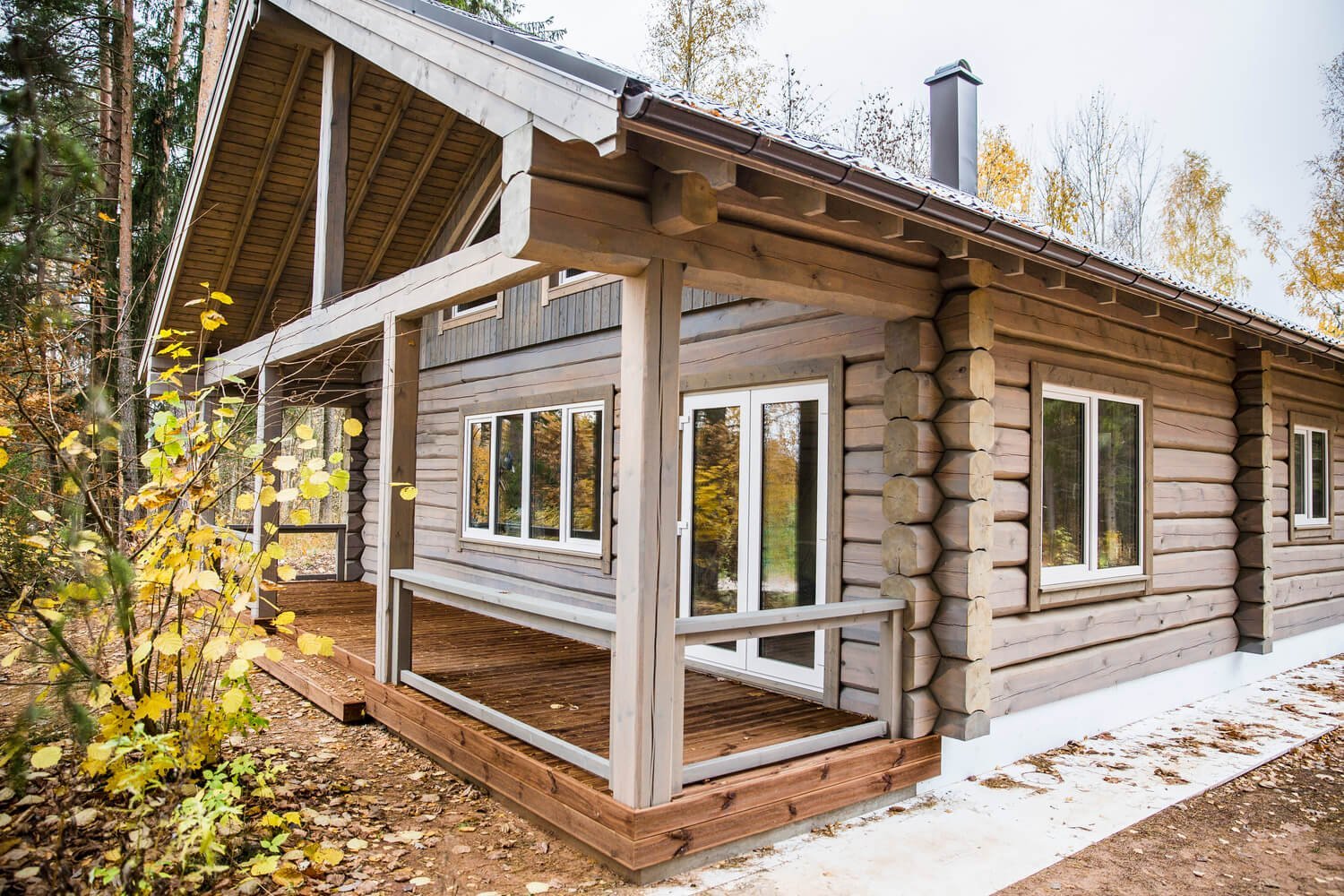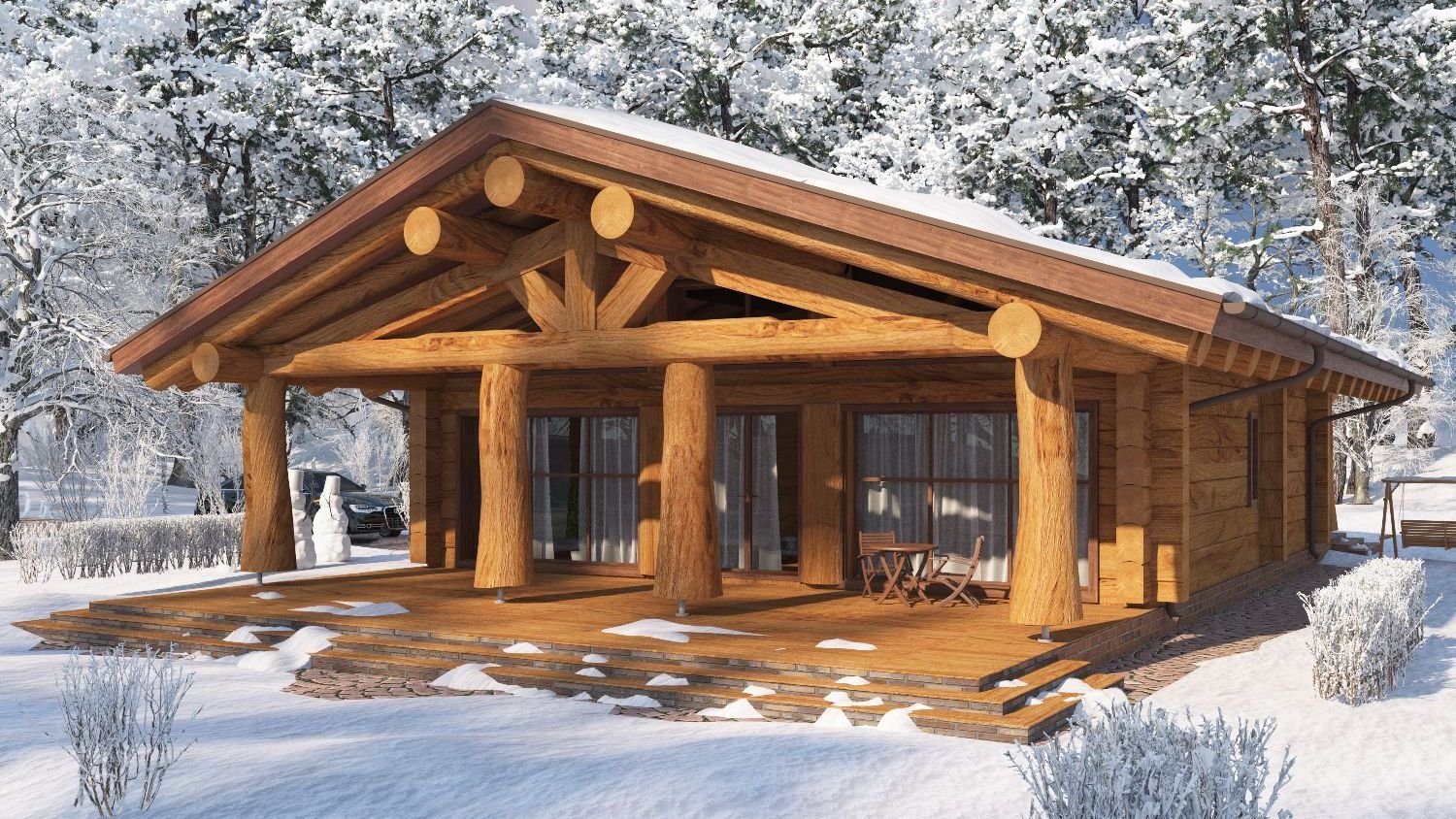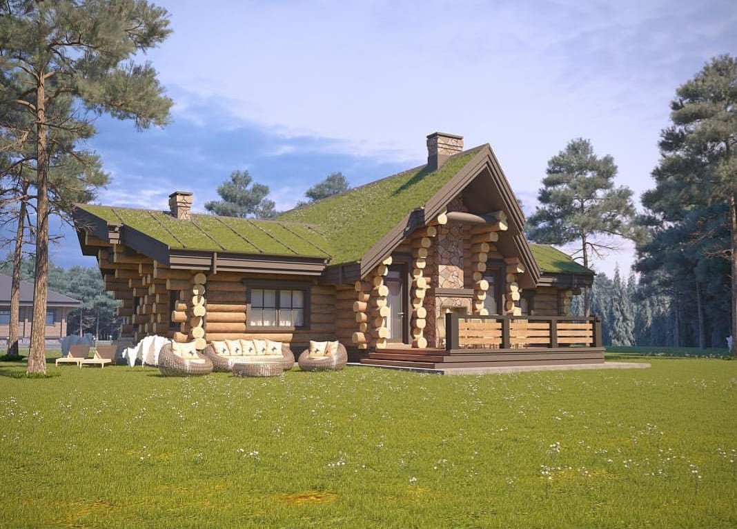 Одноэтажный бревенчатый дом в скандинавском стиле