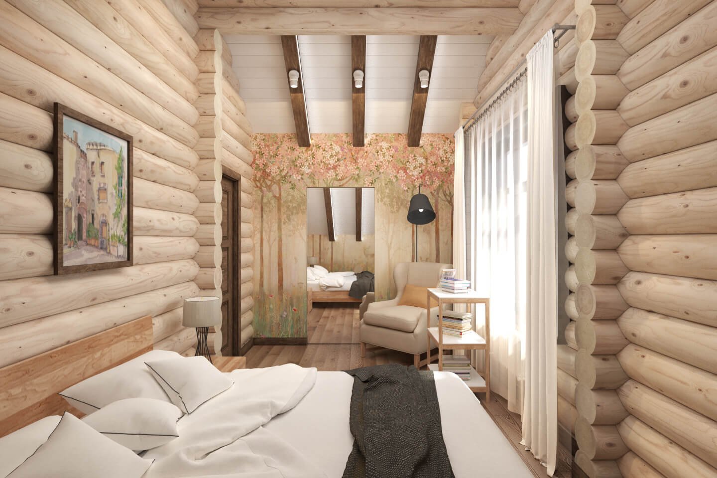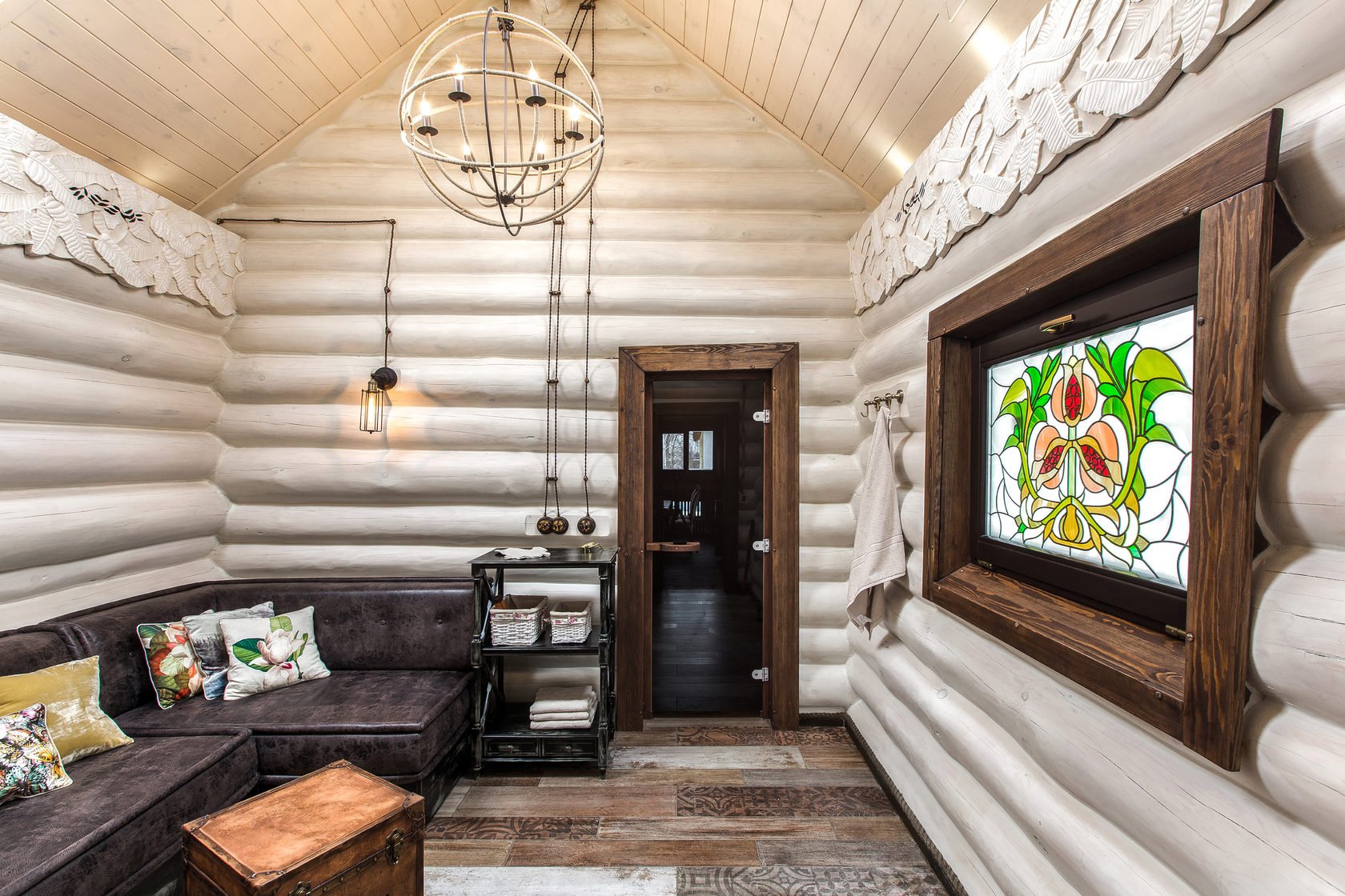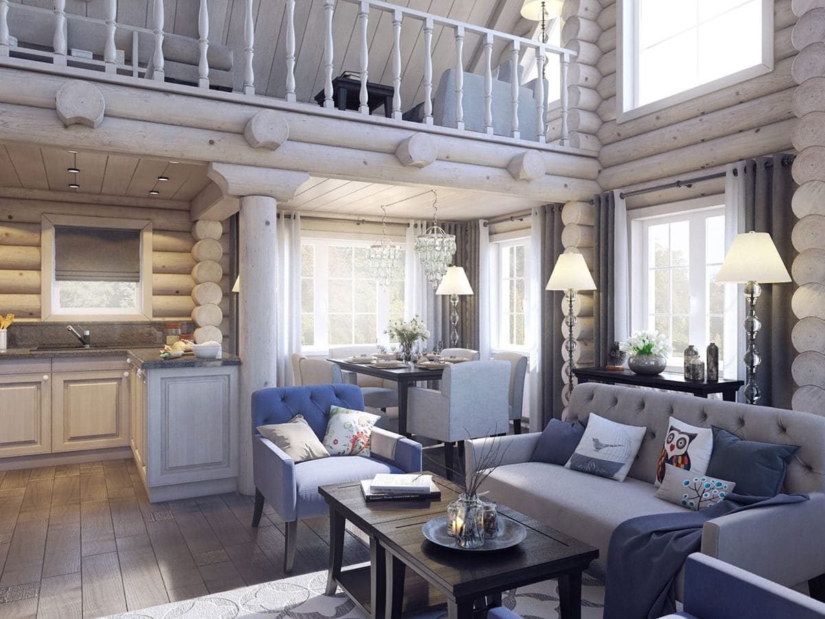 Интерьер дома из оцилиндрованного бревна со вторым светом