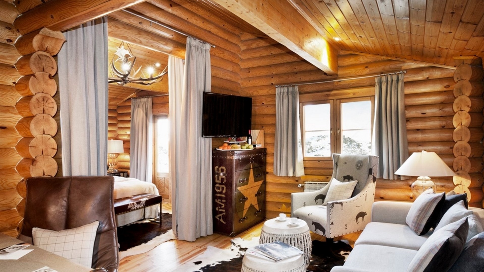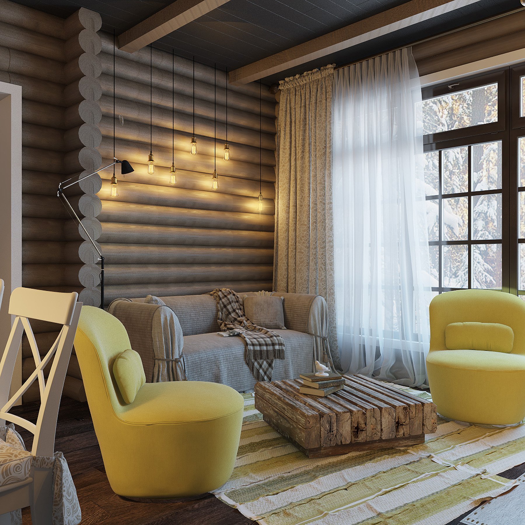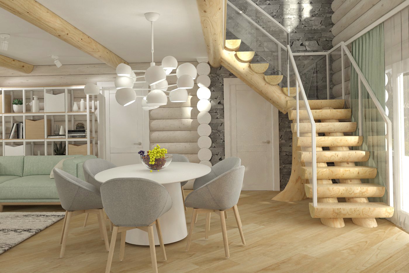 Интерьер дома из оцилиндрованного бревна со вторым светом
