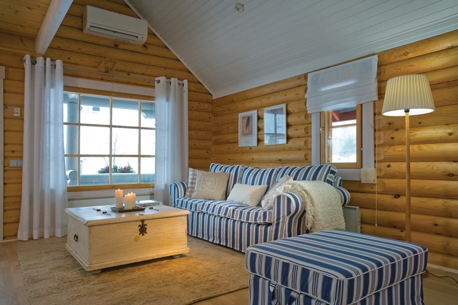 Интерьеры в домах из клееного бруса в скандинавском стиле