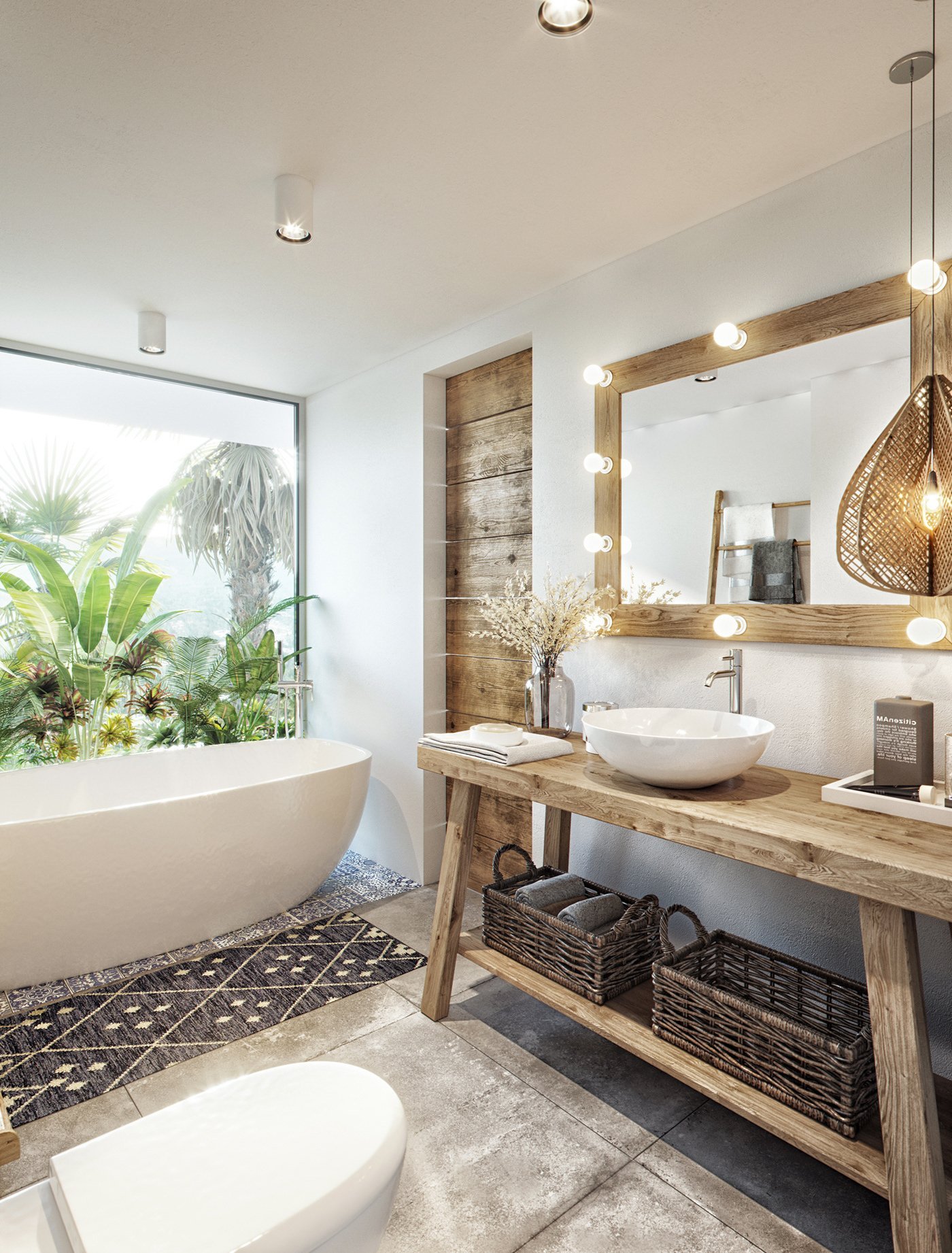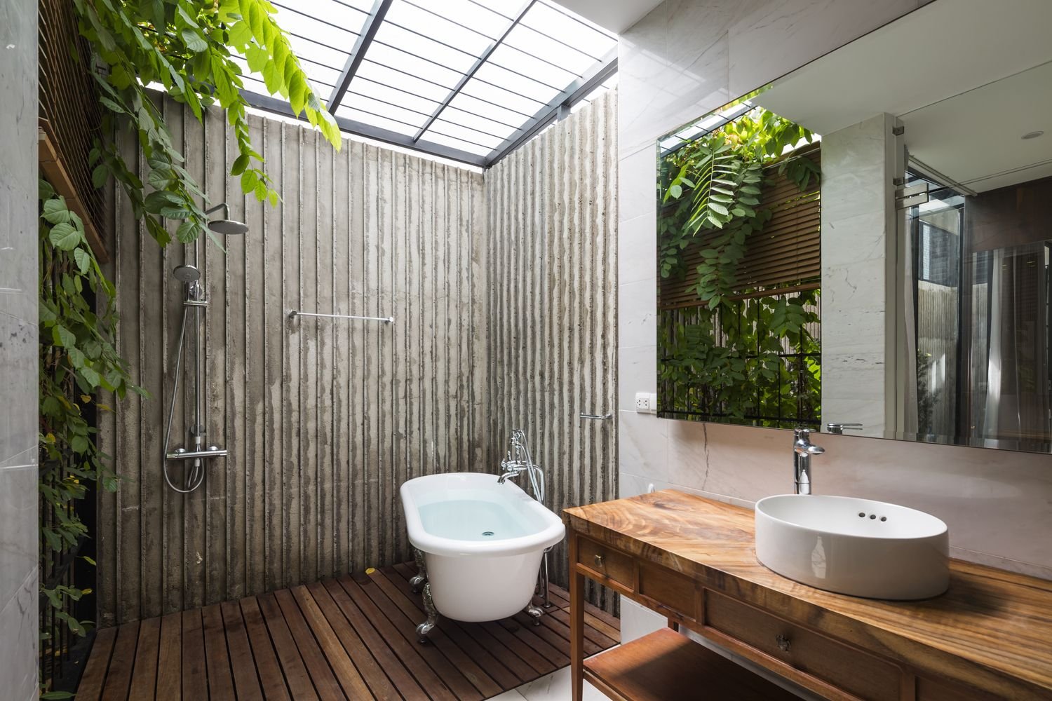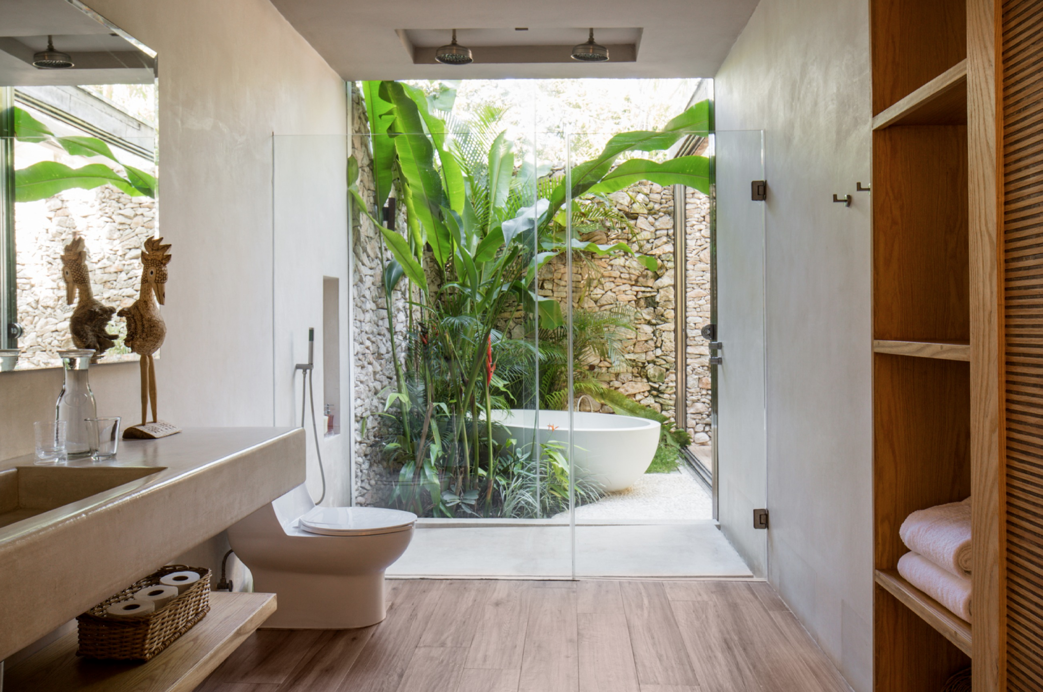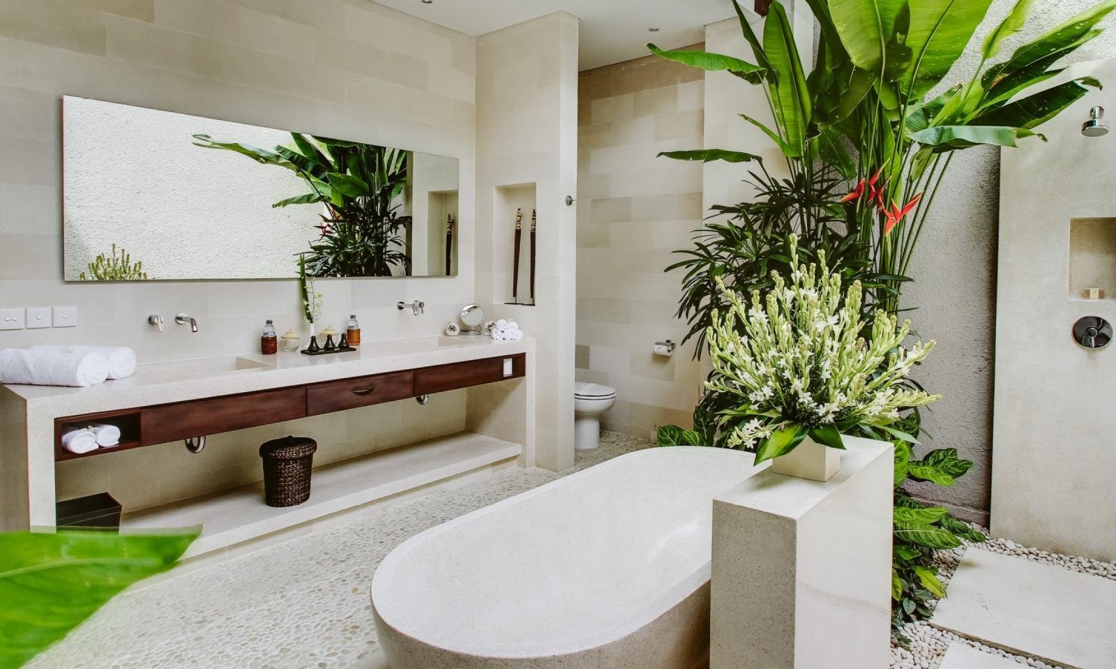 Минималистичный санузел в тропическом стиле дома