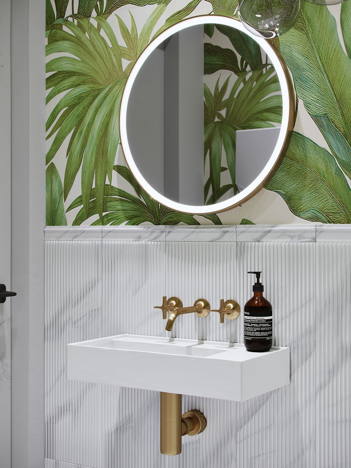 Дизайн в тропическом стиле с стеклянной перегородкой