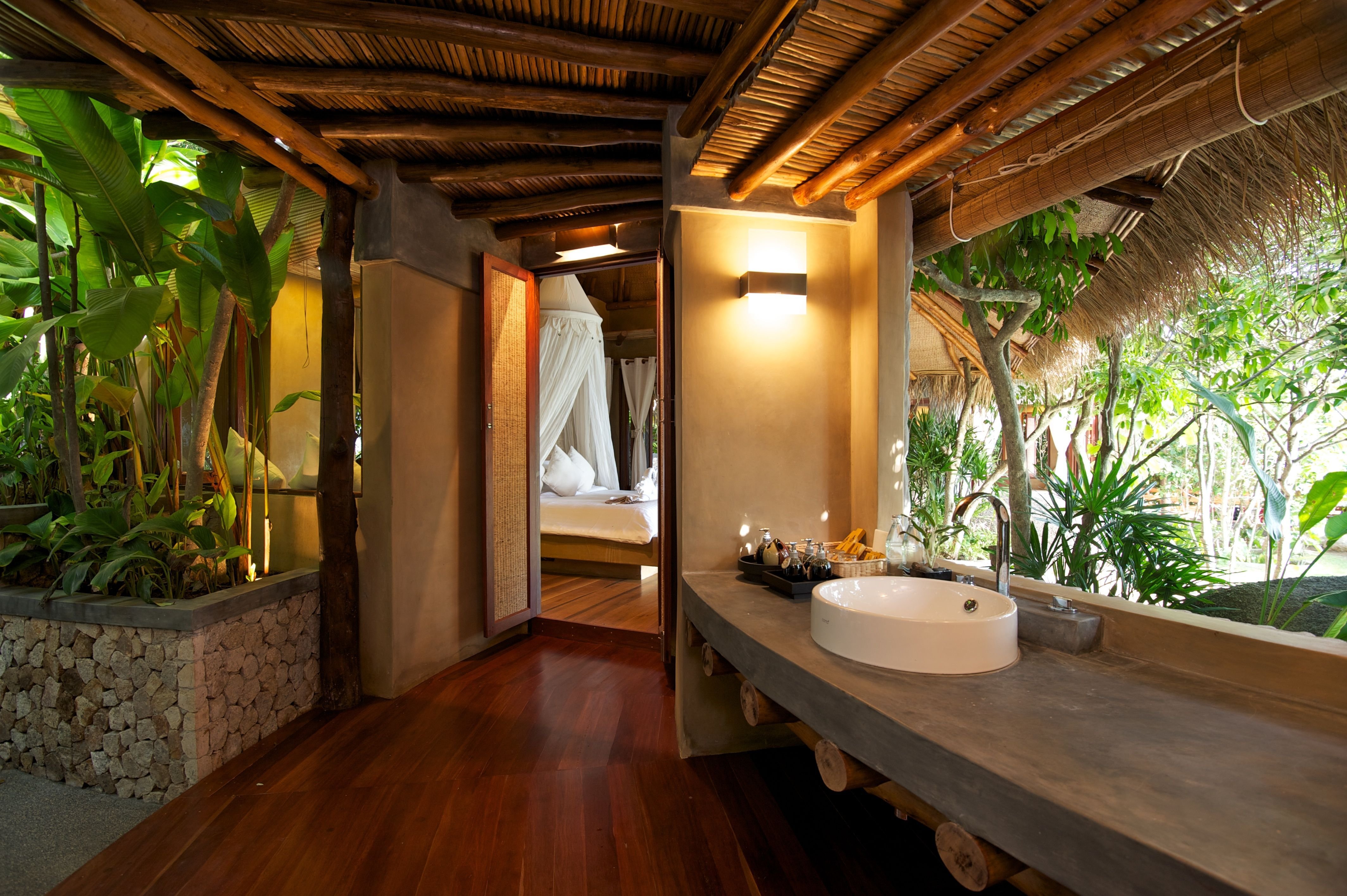 Ванная в тропическом стиле с деревом
