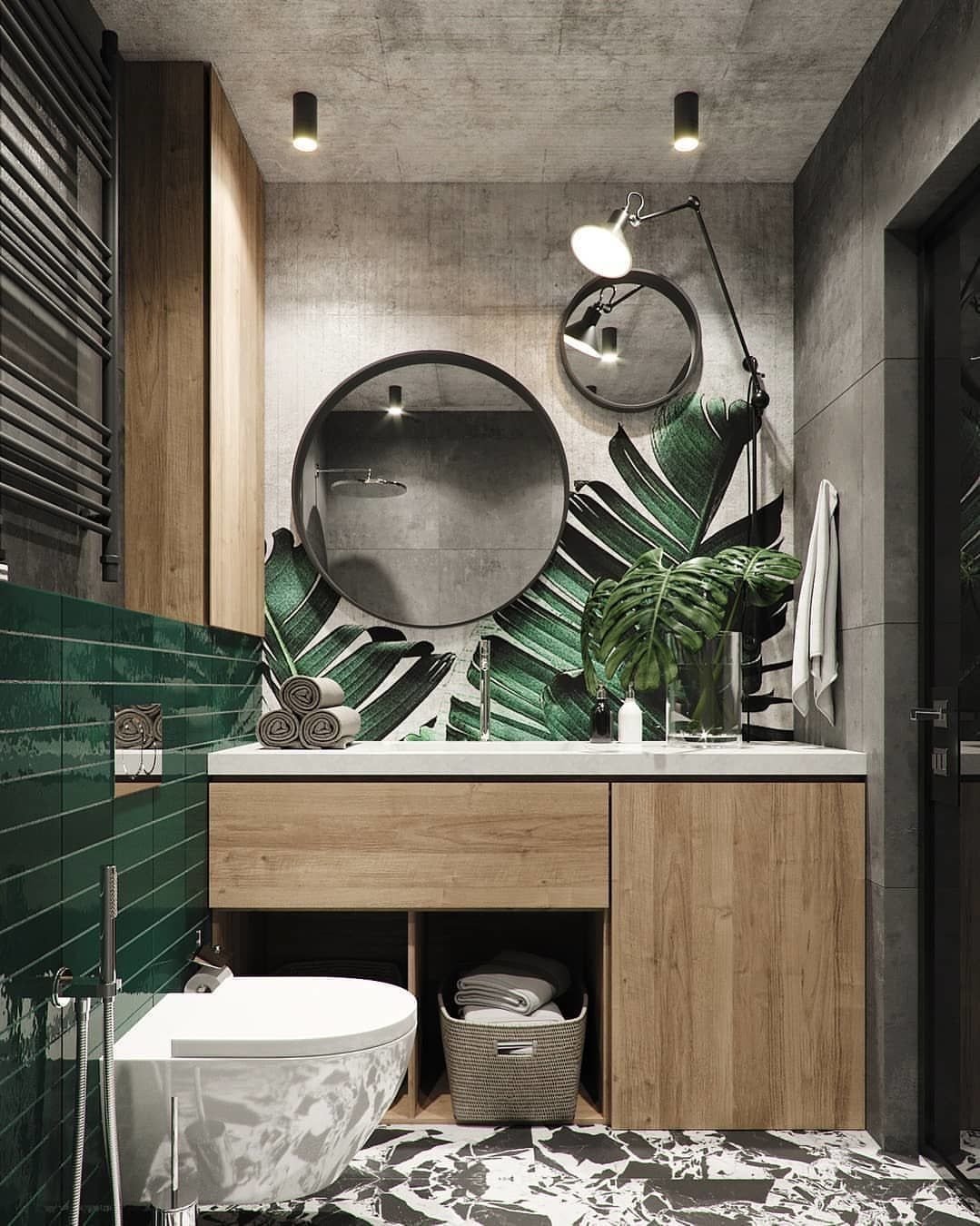 Ванная комната в тропическом стиле в квартире
