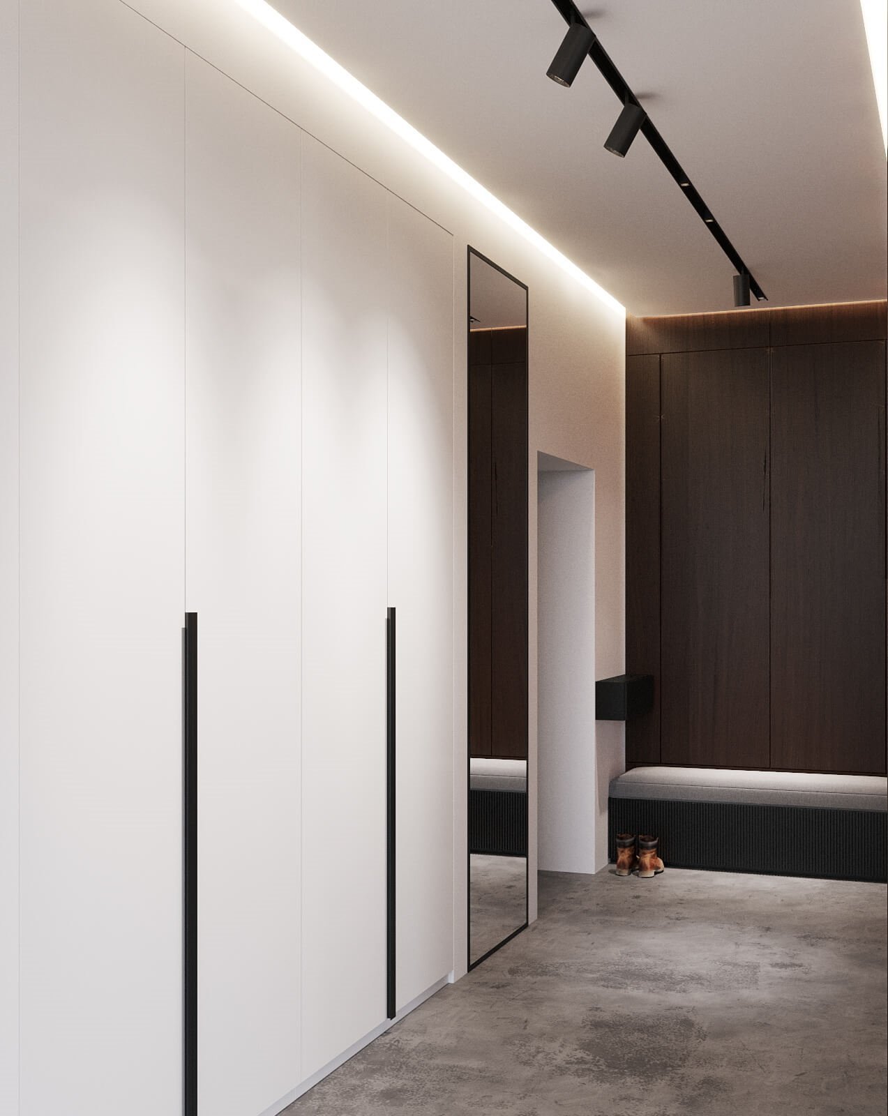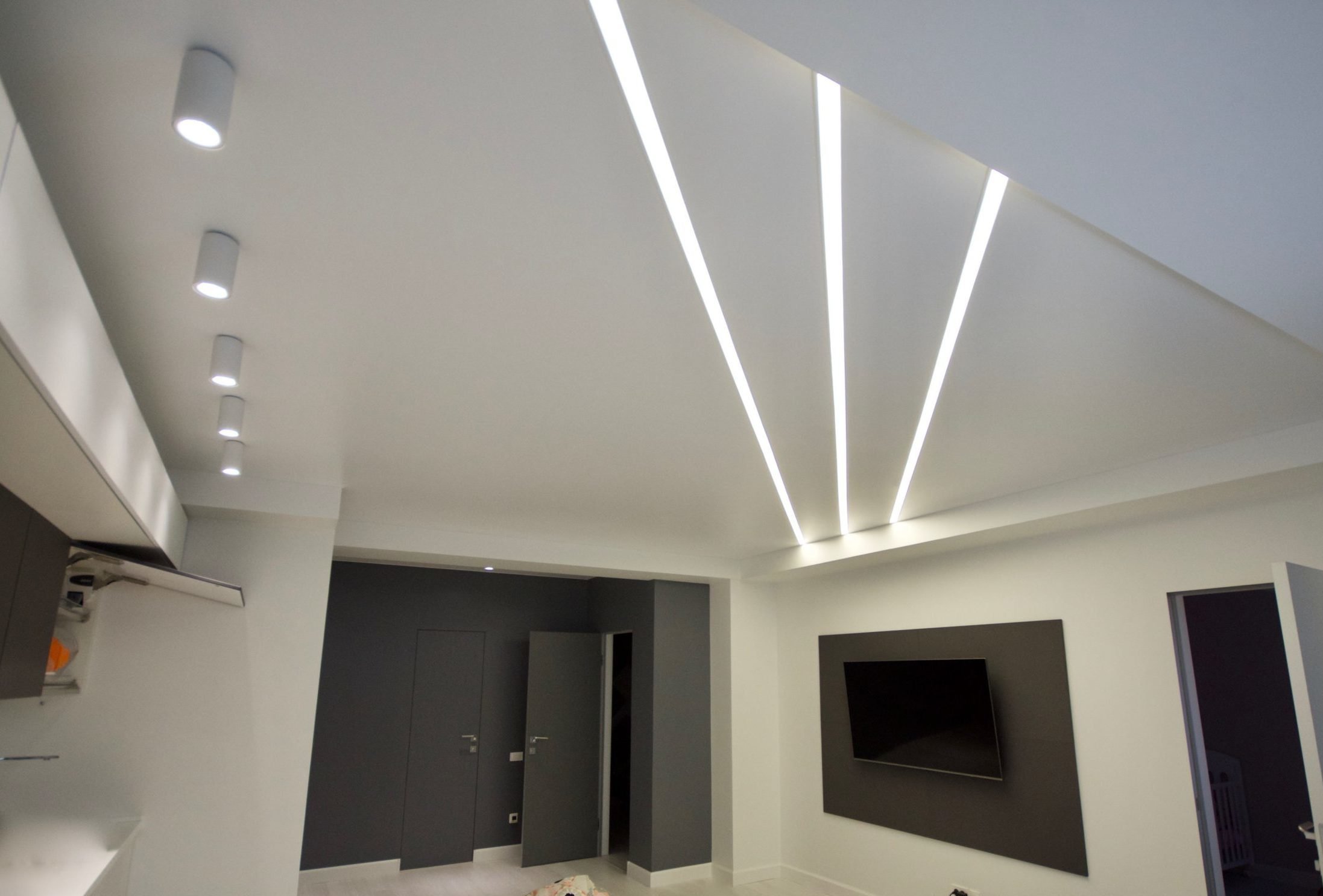 Световые линии на натяжном потолке в коридоре