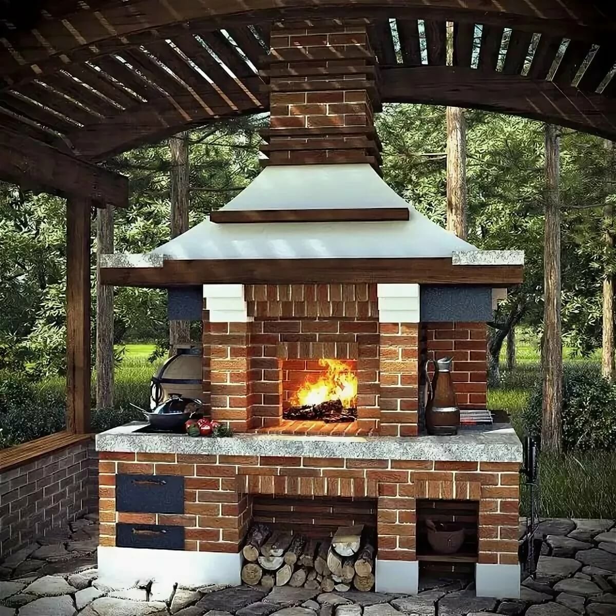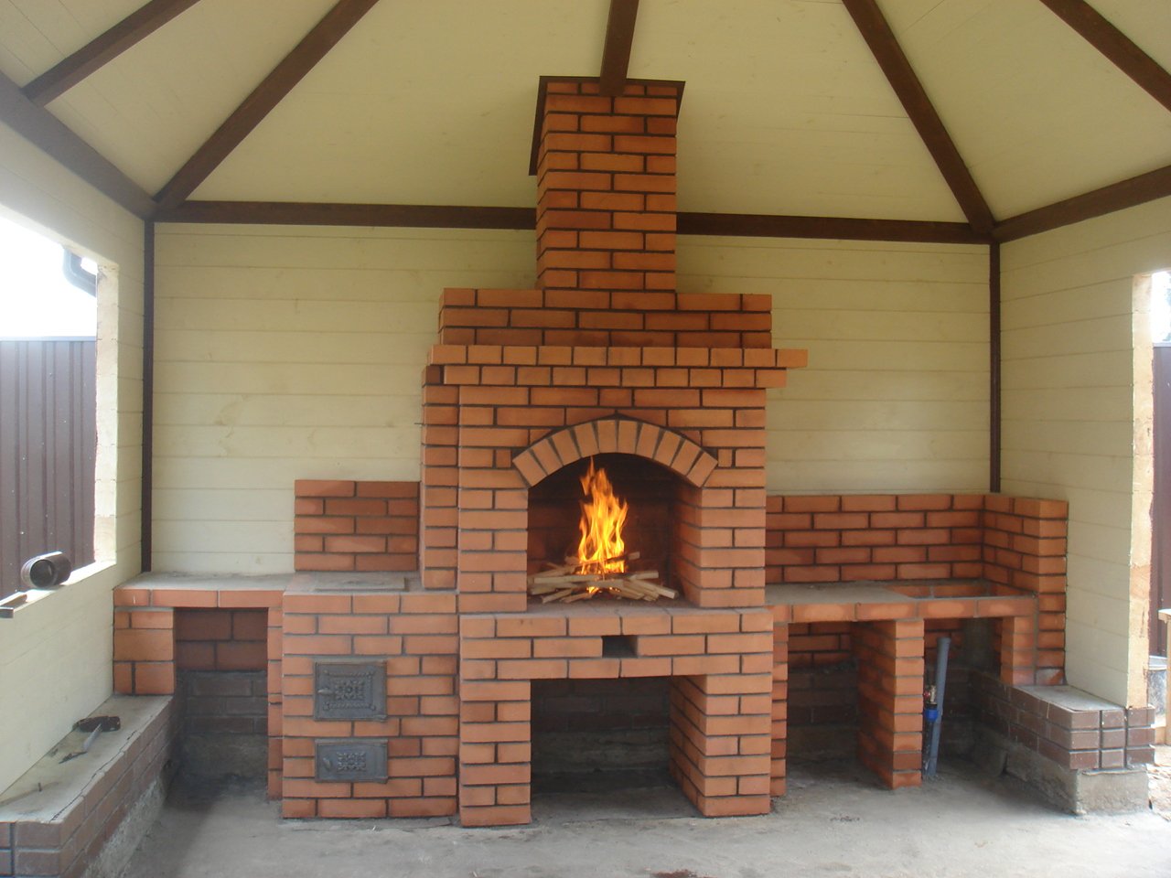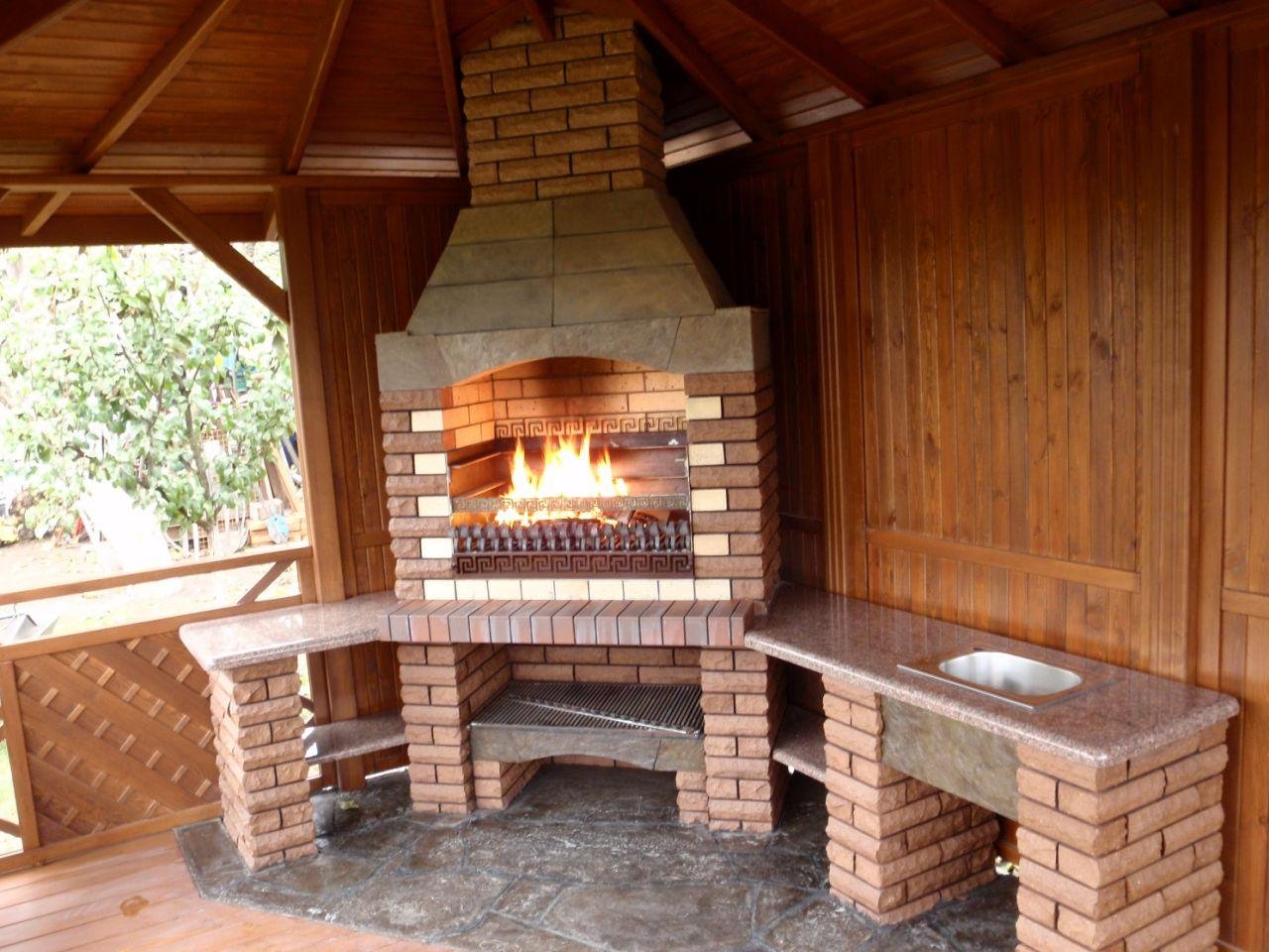 Мангал в беседке из кирпича своими руками