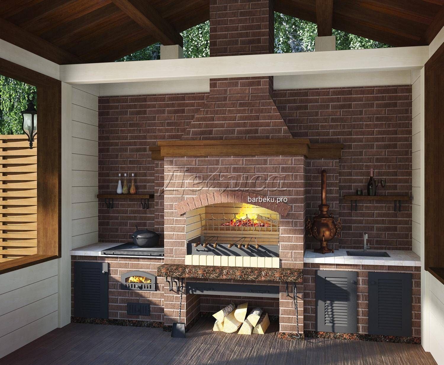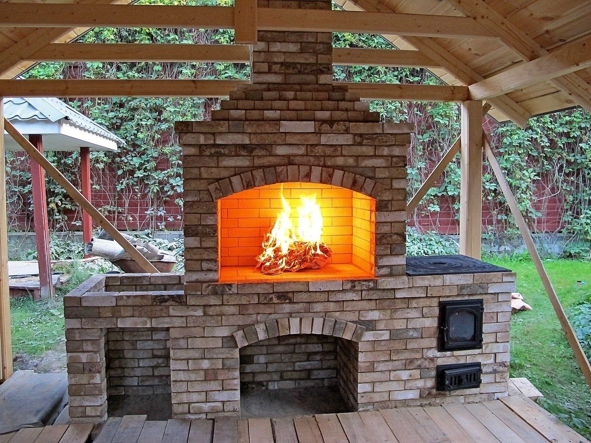 Печь-барбекю для беседки из кирпича