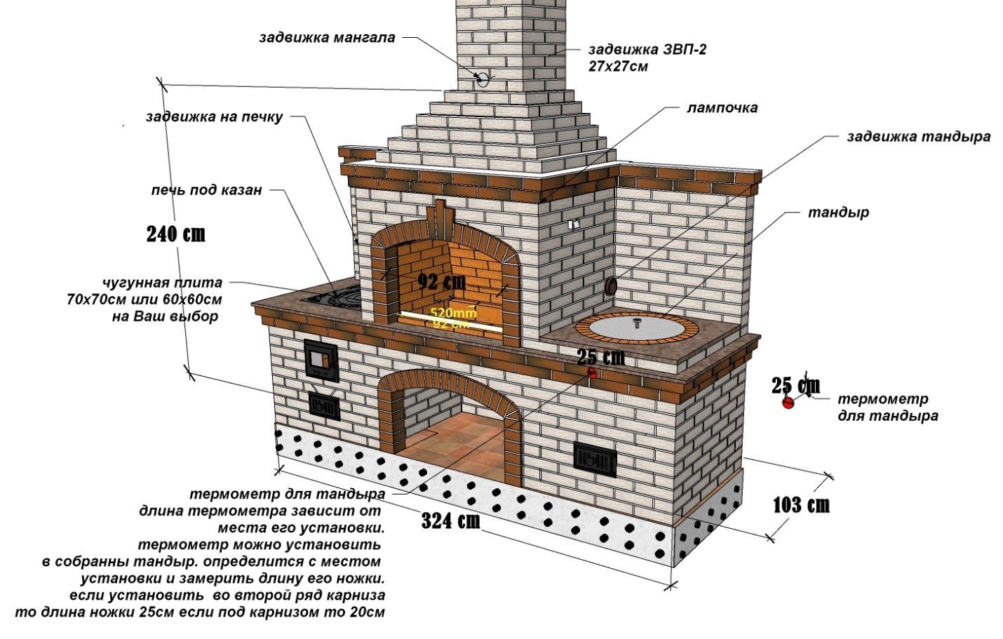 Печь с мангалом и казаном из кирпича порядовка