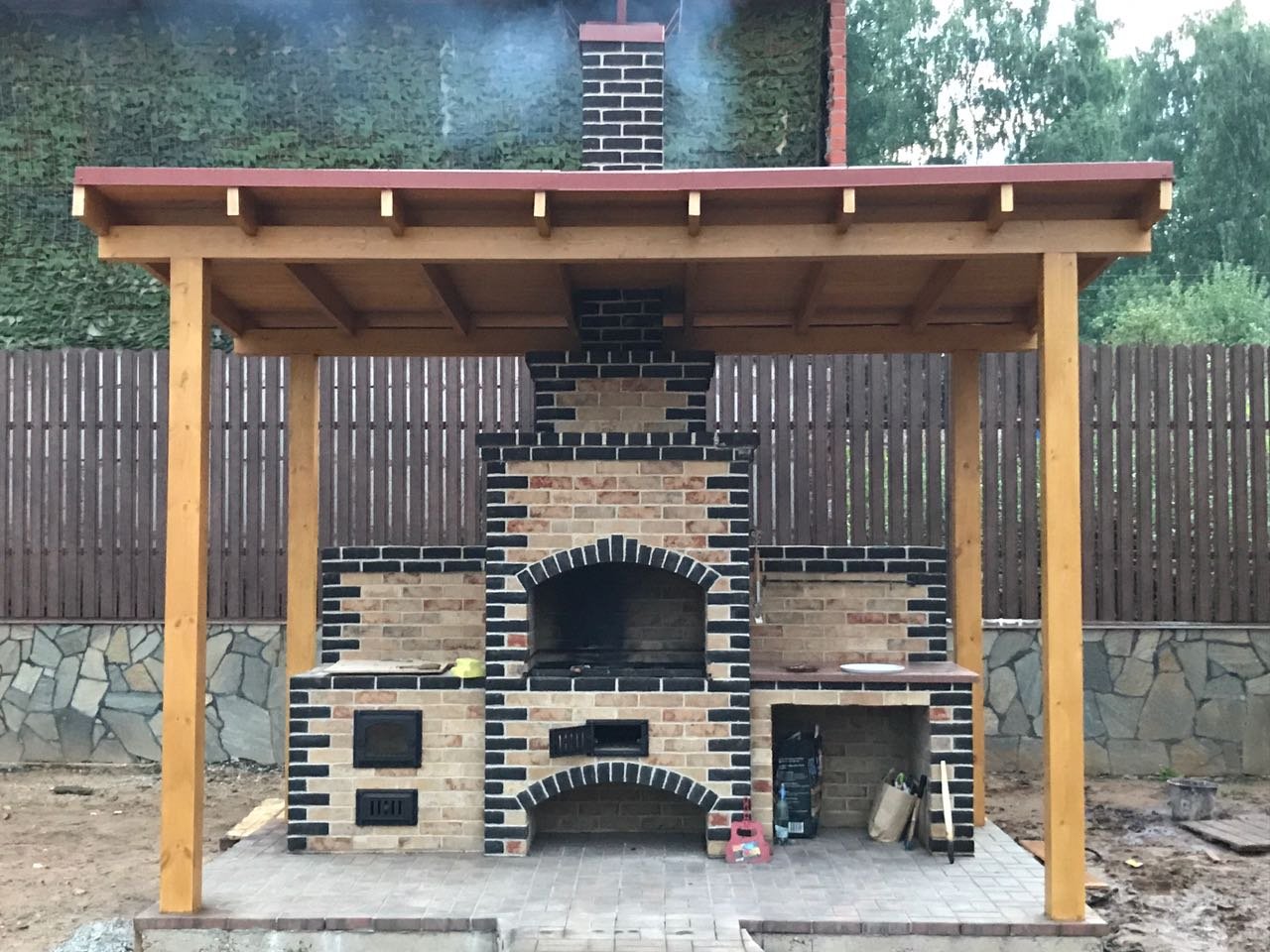 Барбекю из кирпича для беседки своими руками