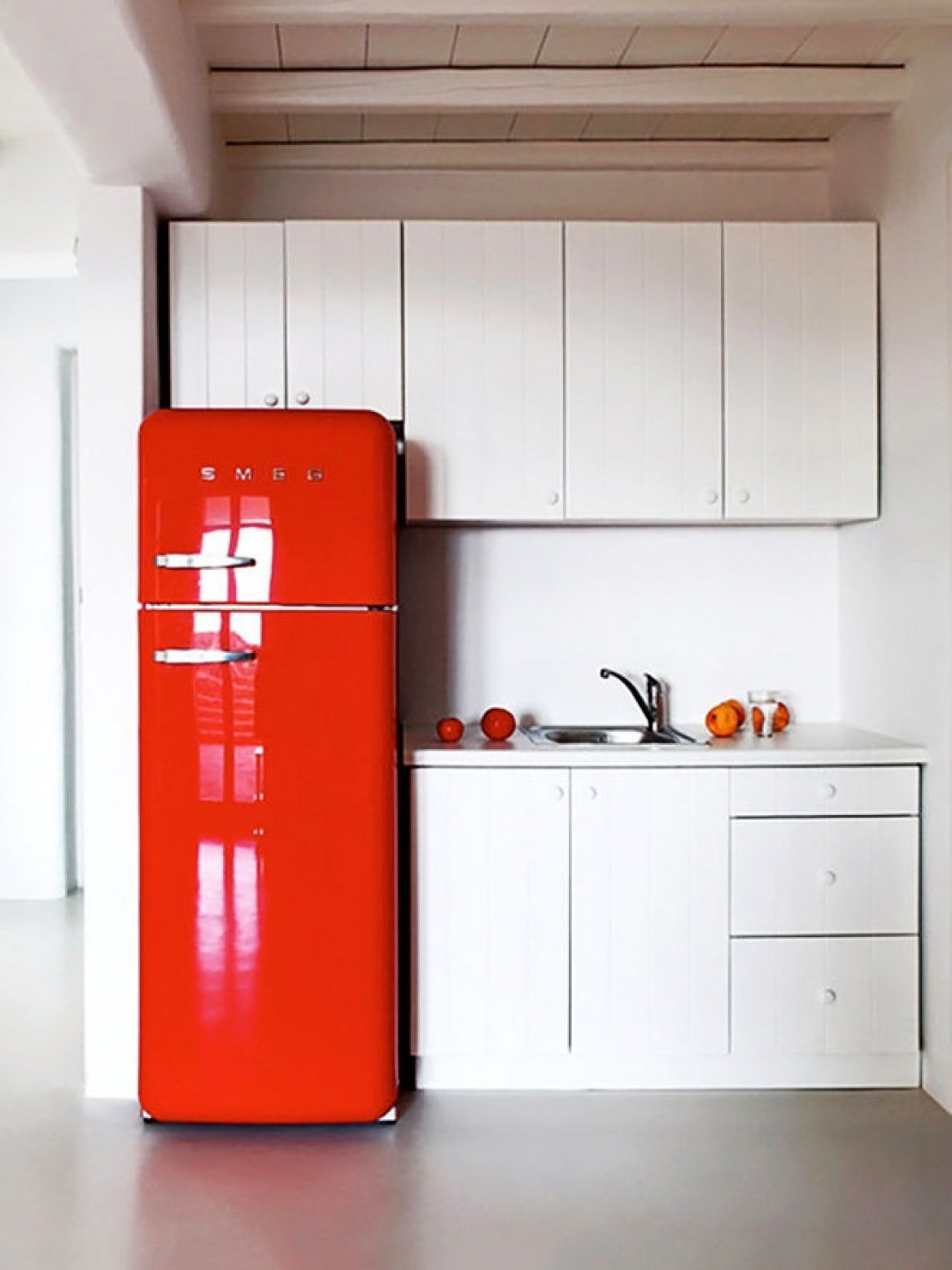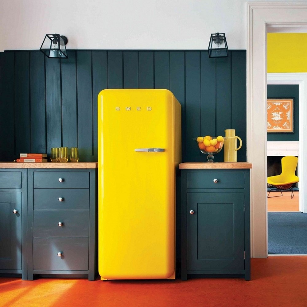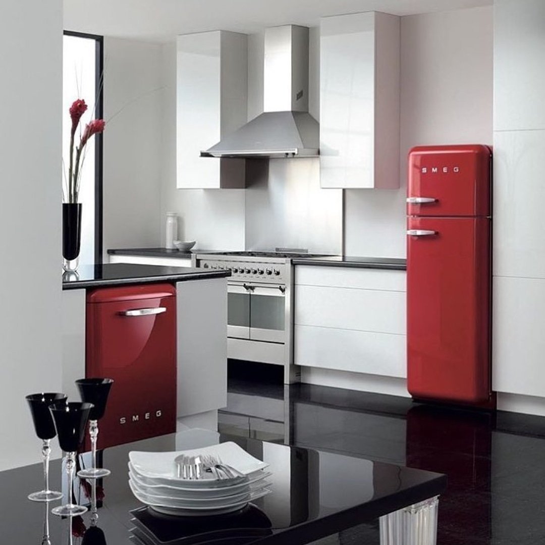 Красный холодильник Смег в интерьере