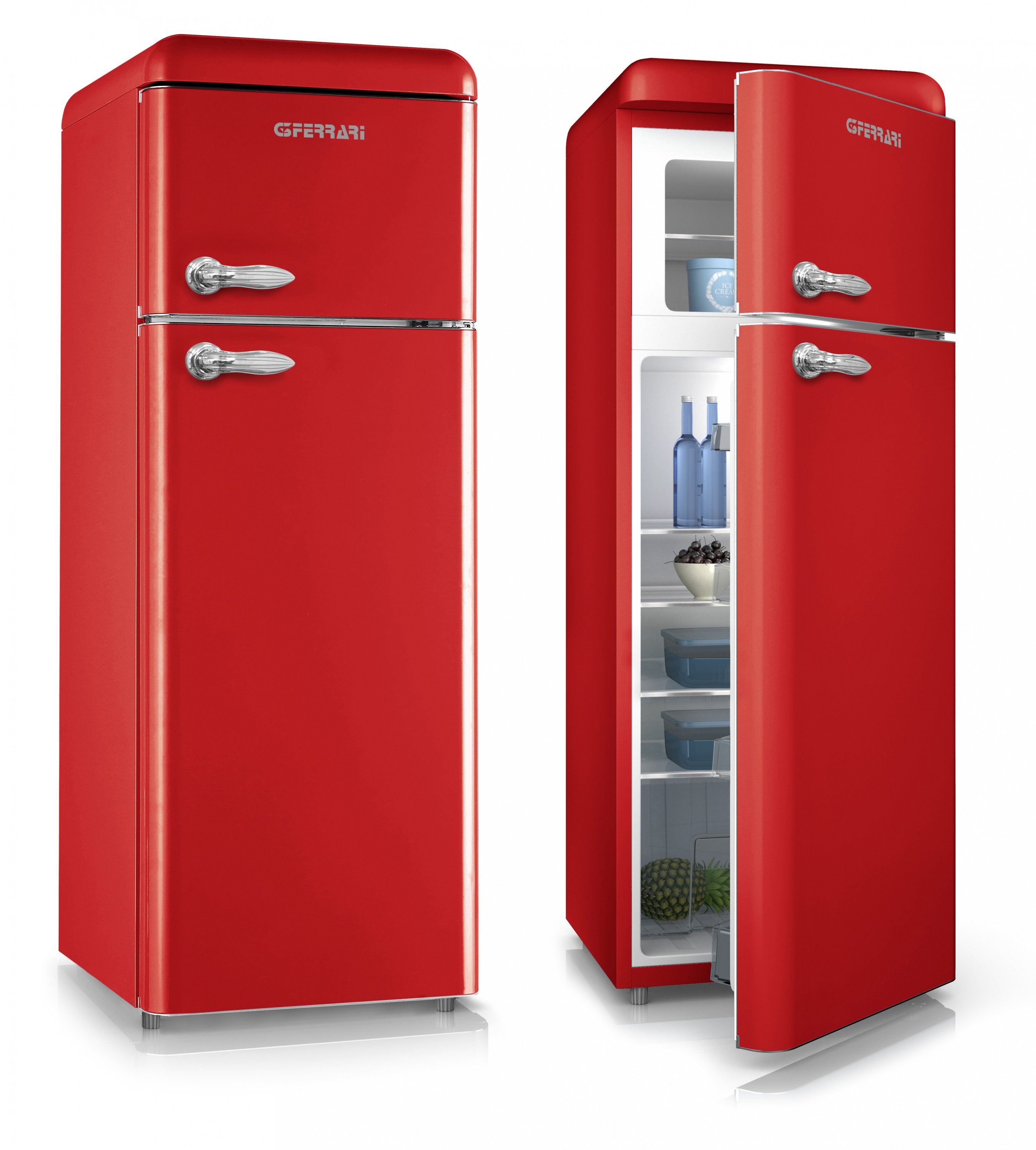 Красный холодильник спереди